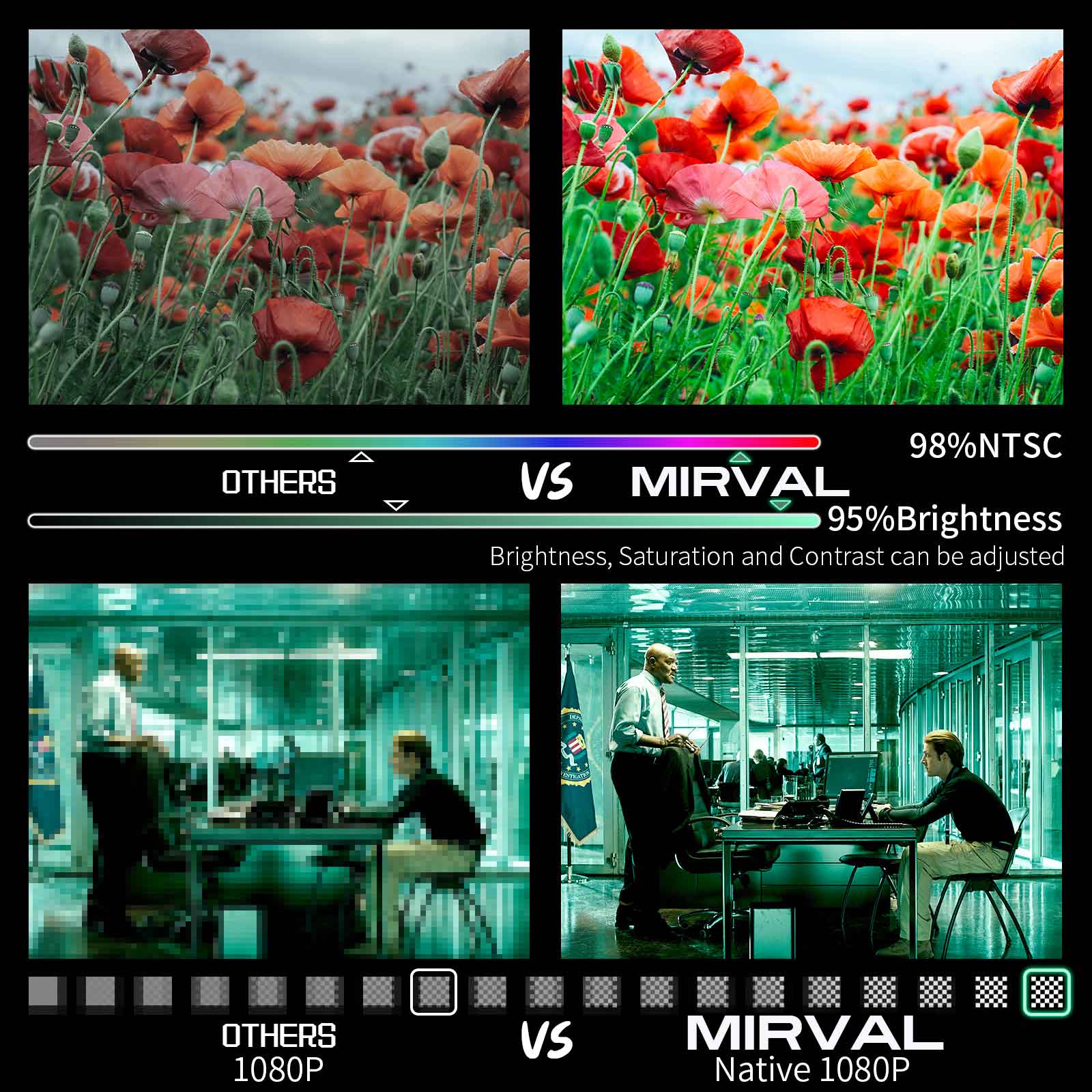 【Full HD 1080P】Mirval P1 Native 1080P Full HD 4K Projector Portable Beamer 8500 Lumens Auto Keystone Home Cinema Classroom Office