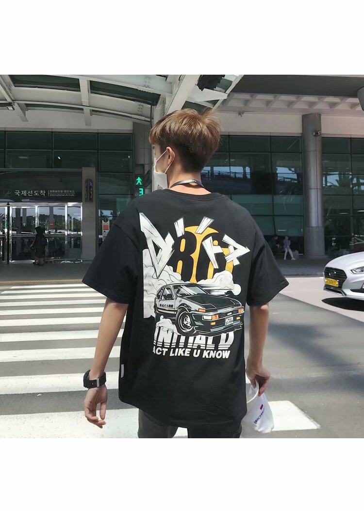 t shirt Men Large Size Korean Street Style Figure Cartoon Print Oversize Casual Fashion Tops