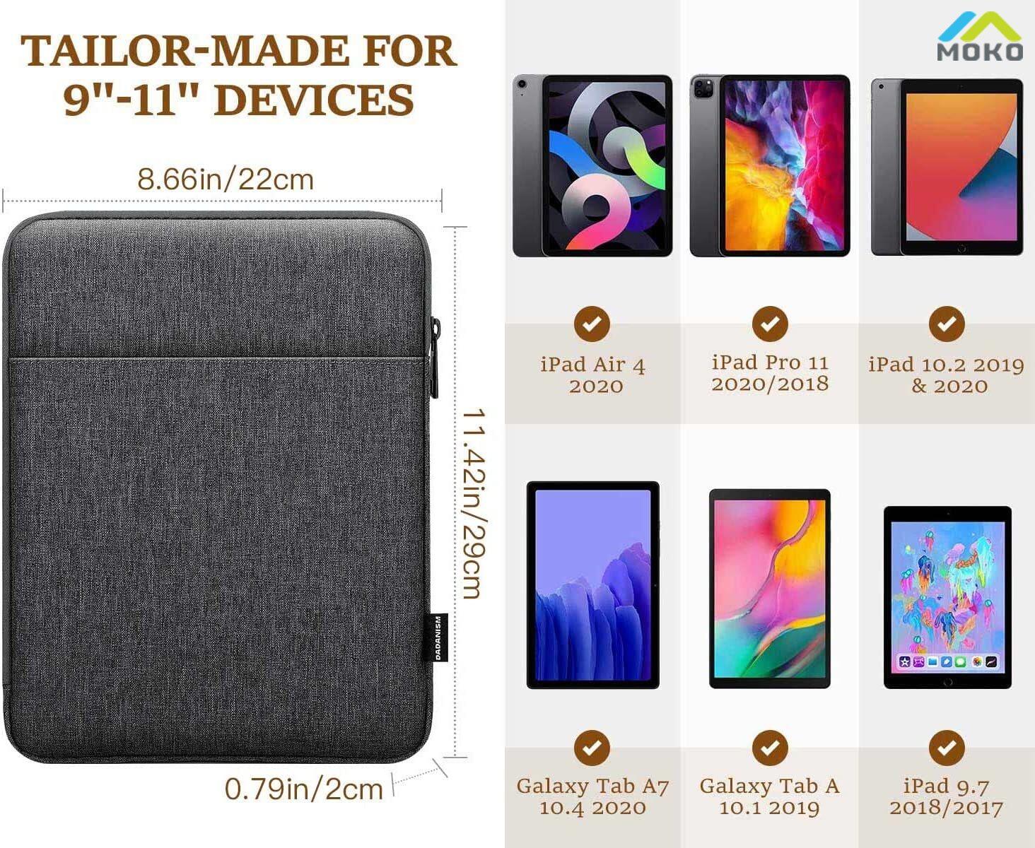 MOKO 9-11 Inch Tablet Sleeve Carrying Case for iPad 10.2 2021-2019, iPad Pro 11 2021-2018, iPad Air 4 10.9 2020, Galaxy Tab A8 10.5 2022, Tab A7/S6 Lite 10.4, Tablet Protective Bag