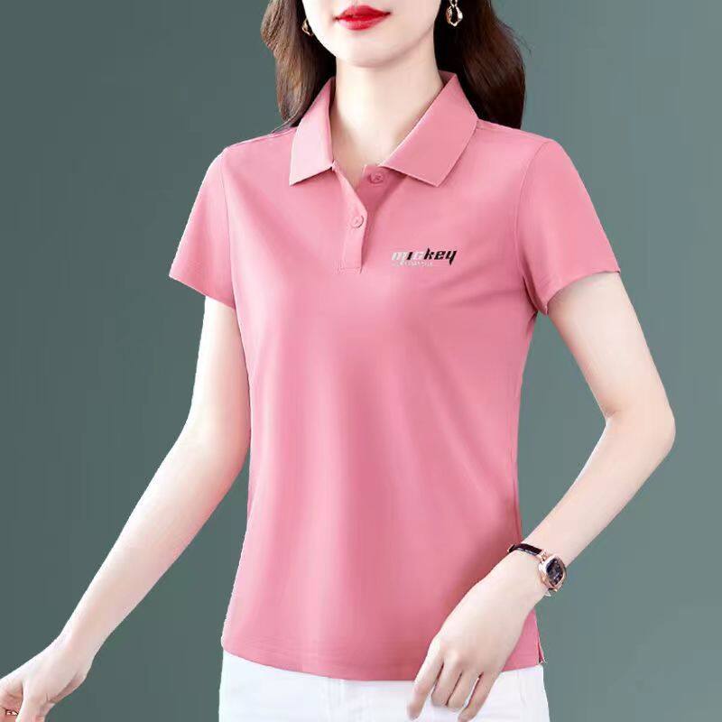 6 colors Plus Size Fat Female Can Wear Korean Version Short Sleeve Ladies Fashion Casual Sport Polo Shirt Women Running Clothes Lapel T-shirt Polo collar Classic tees