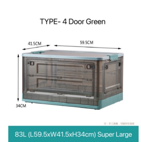 Heighten 52L/82L Foldable stackable Organizer 2/4 side door open storage box