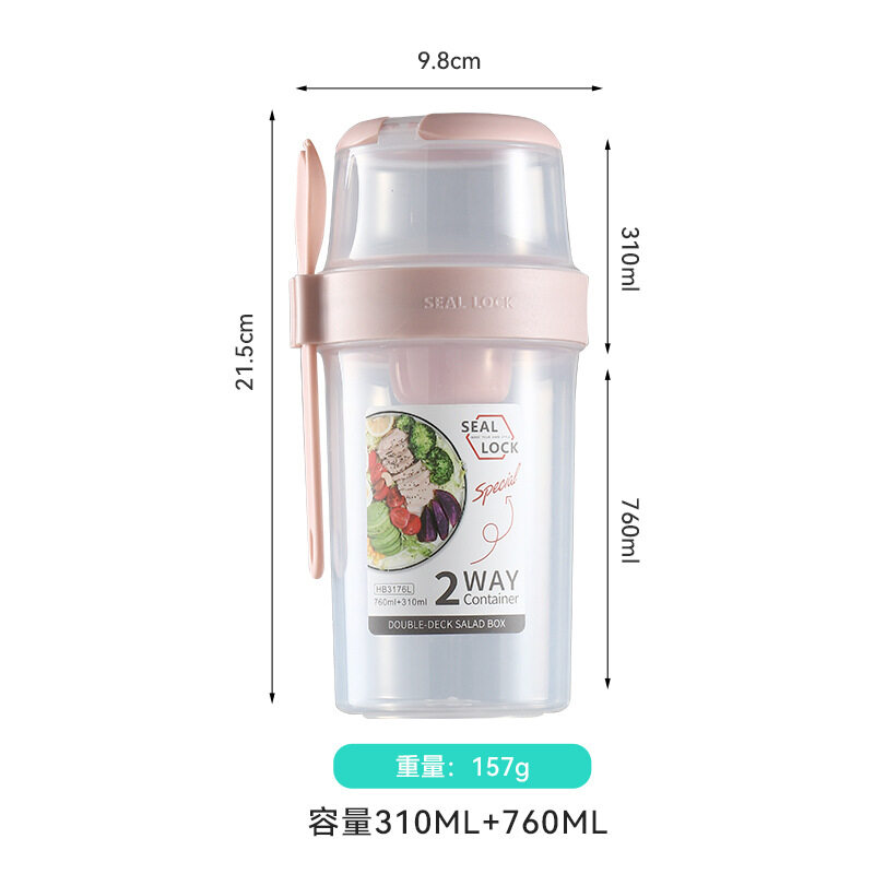 Bilibini With Spoon Lid With Fork Seal Portable Light Meal Double Layer Salad Cup