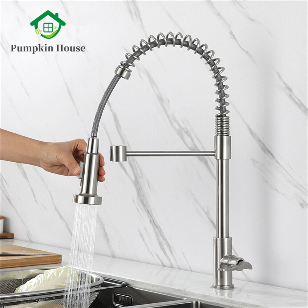 Kitchen sink tap pull out spring faucet 304 stainless steel single cold water faucet deck mounted dual mode water outlet silver kitchen faucet