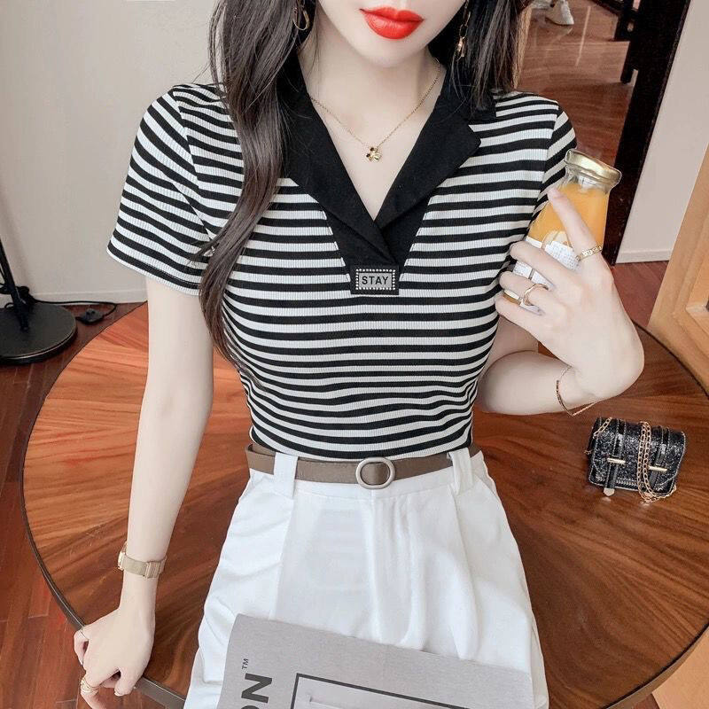Women’s Short Sleeve Polo Shirt Lapel Temperament Tops for Women Summer New Age-reducing Casual Polo Shirt