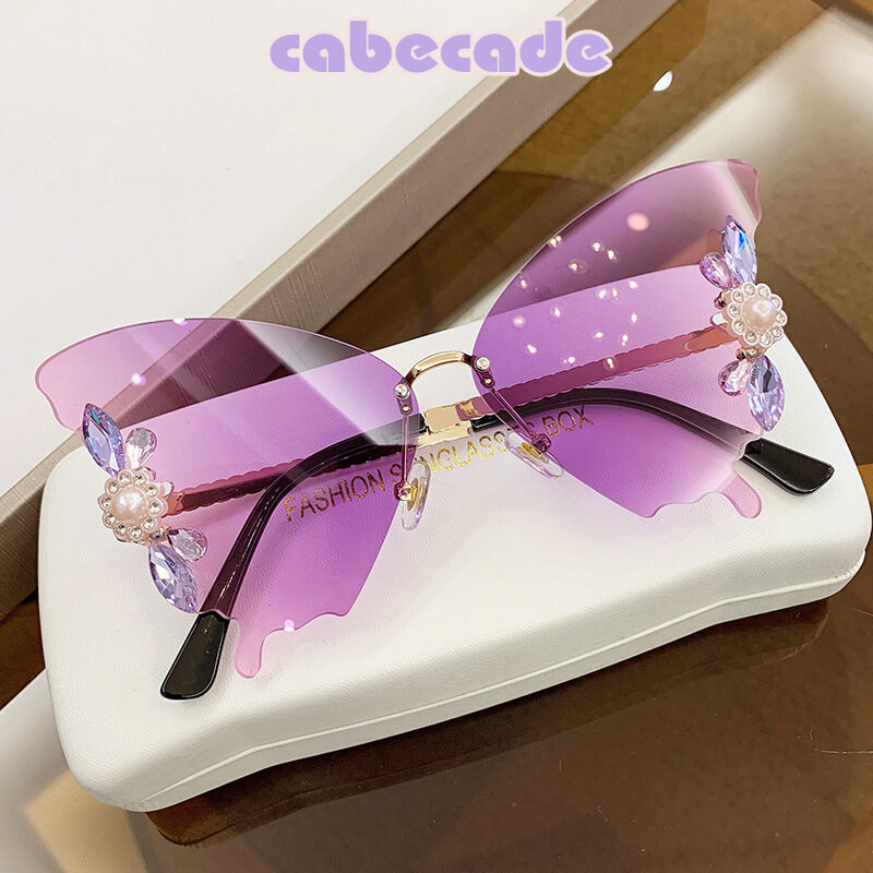 Cabecade 【high quality】 New butterfly-shaped diamond-encrusted large-frame sunglasses women's fashion sunglasses women's trend street shooting INS net red fashion wear