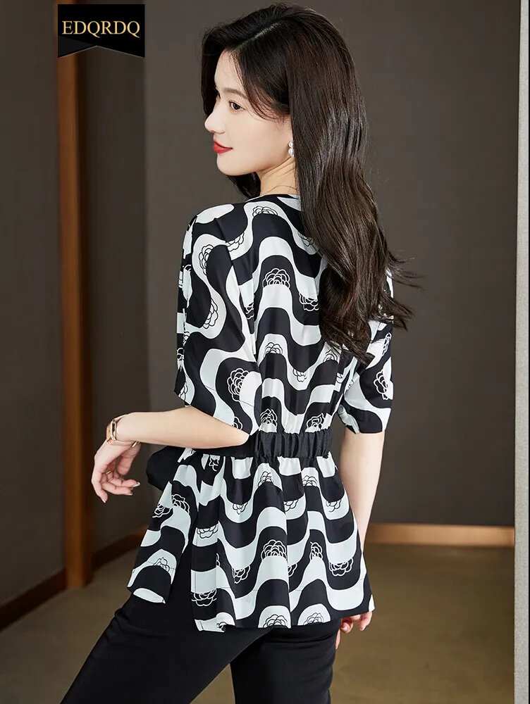 EDQRDQ Floral Tops Ruffles V Neck Petal Sleeve Batwing Blouses for Women