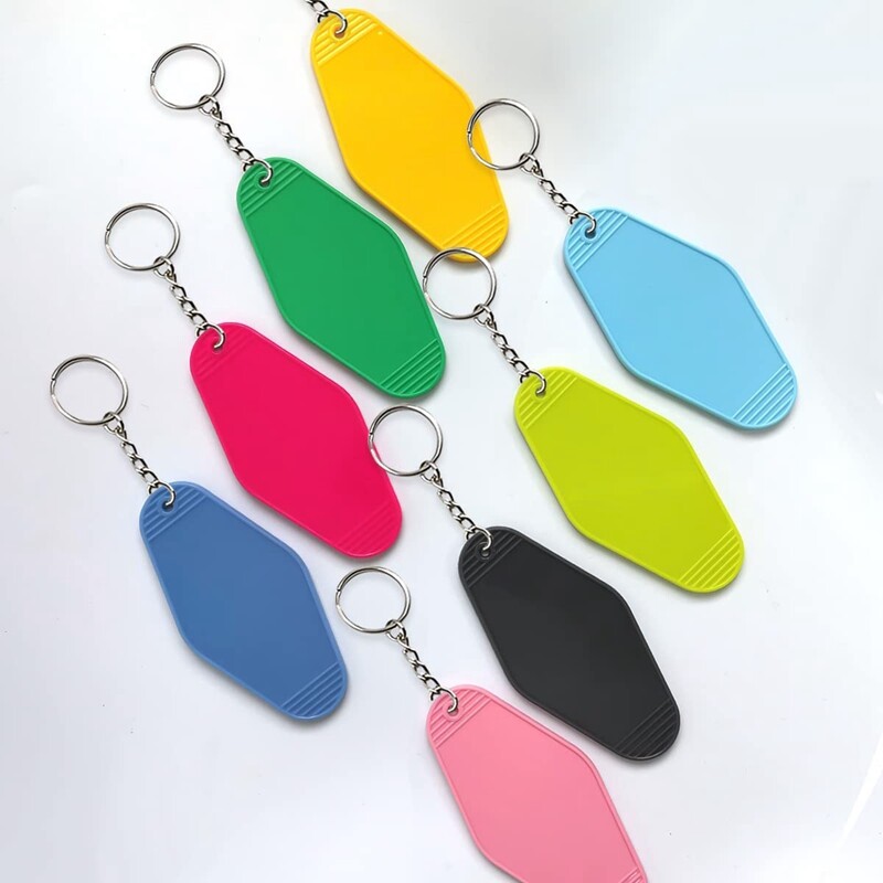 PREMIUM MATERIAL: This diamond hotel motel keychain is made of ABS high hardness plastic with rounded corners around the label, smooth without burrs, secure and great touch. Steel keyring connectors are suitable for a variety of usage scenarios.