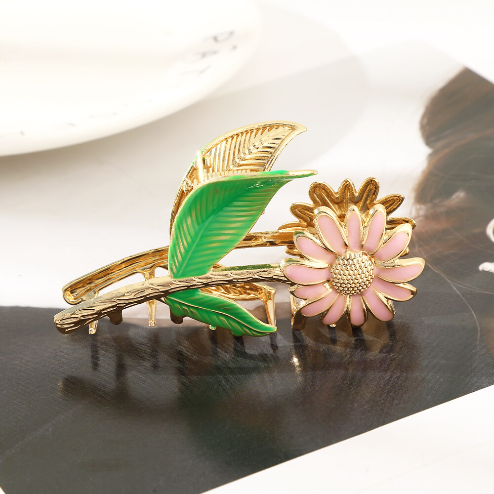 1pc Korean Gold Sunflower Hair Clip Alloy Flower Woman Hair Claw Ponytail Hairpin Summer Hair Accessories