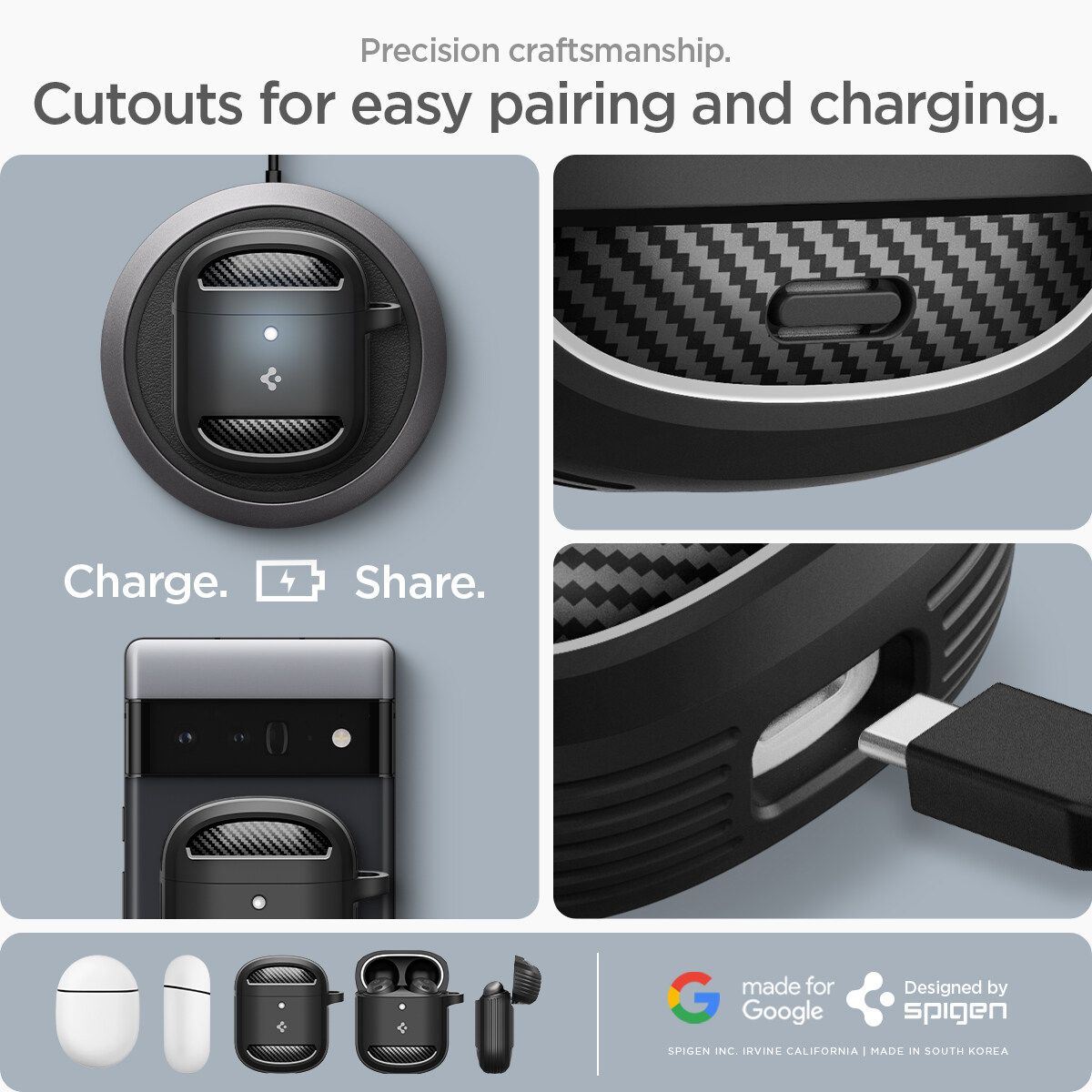 SPIGEN Case for Pixel Buds Pro [Rugged Armor] Jam-Packed Protection in Sleek Carbon Fiber Design / Pixel Buds Pro Case / Pixel Buds Pro Casing / Google Pixel Buds Pro Case