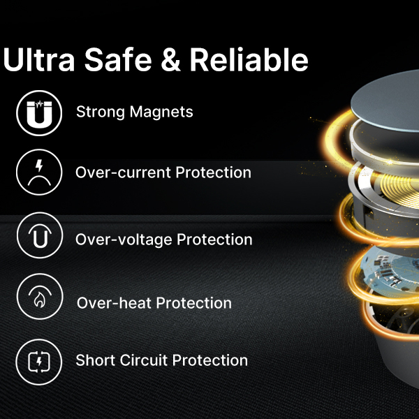 Fiddling with your phone's charging cable can be irritating at times. JSAUX 15W Magnetic Wireless Charger uses a strong magnetic array to ensure your iPhone 14/13/12 is in the perfect position for charging and provide convenient charging for situations when you don’t need a super-fast recharge.