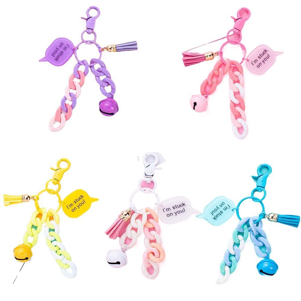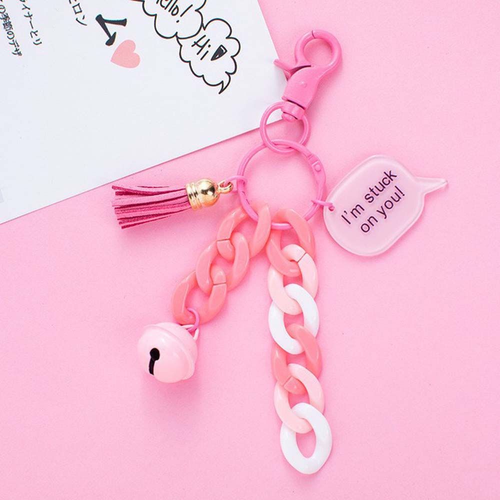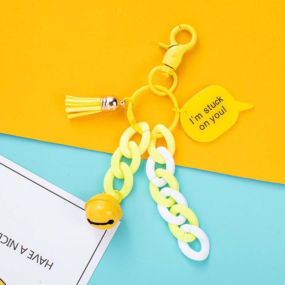 BINRUI Handmade Creative Backpack Decoration Phone ornaments Fashion Jewelry Acrylic Small Bell KeyChains Link Chain Keyring Car Keychain Bag Pendent