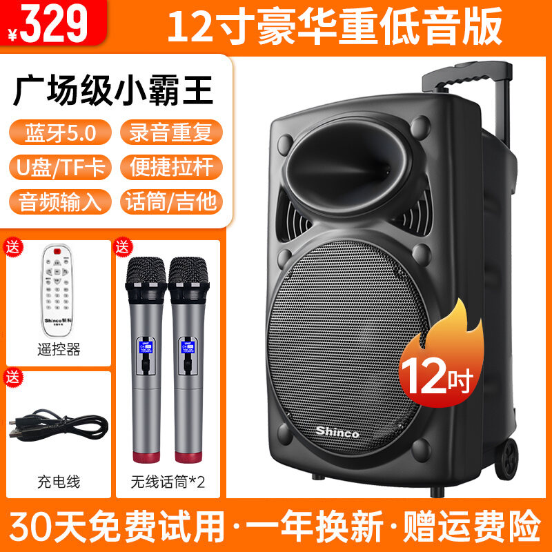 Xinke Square Dance Audio Outdoor Karaoke Mobile Pull Bar Bluetooth Speaker with Microphone Store Dedicated High Volume