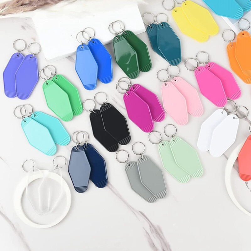 40Pcs Vintage Motel Keychains 20 Colors Hotel Keychains Blank Heat Transfer Ornament for Sublimation Vinyl DIY Making