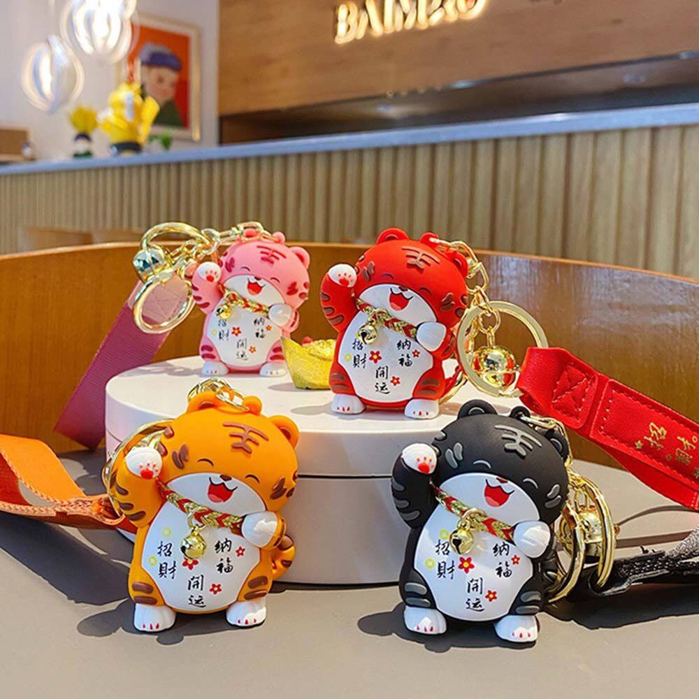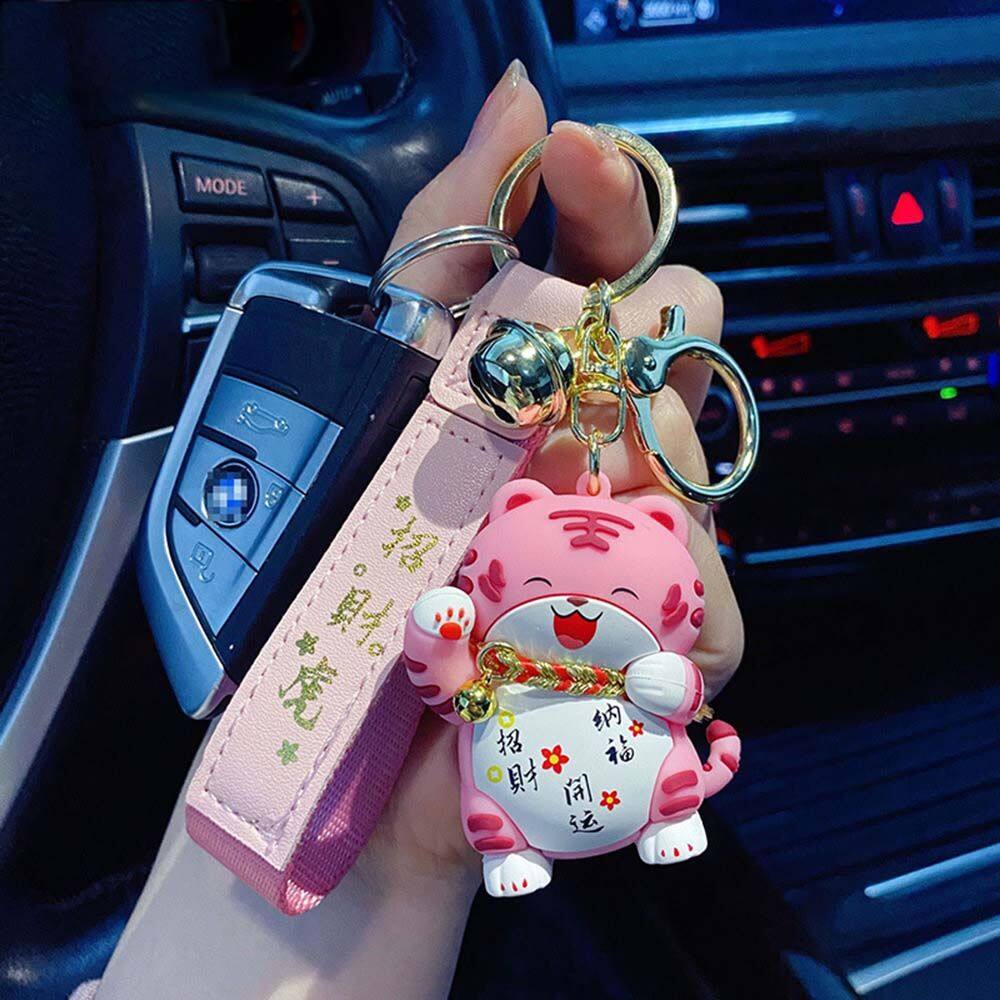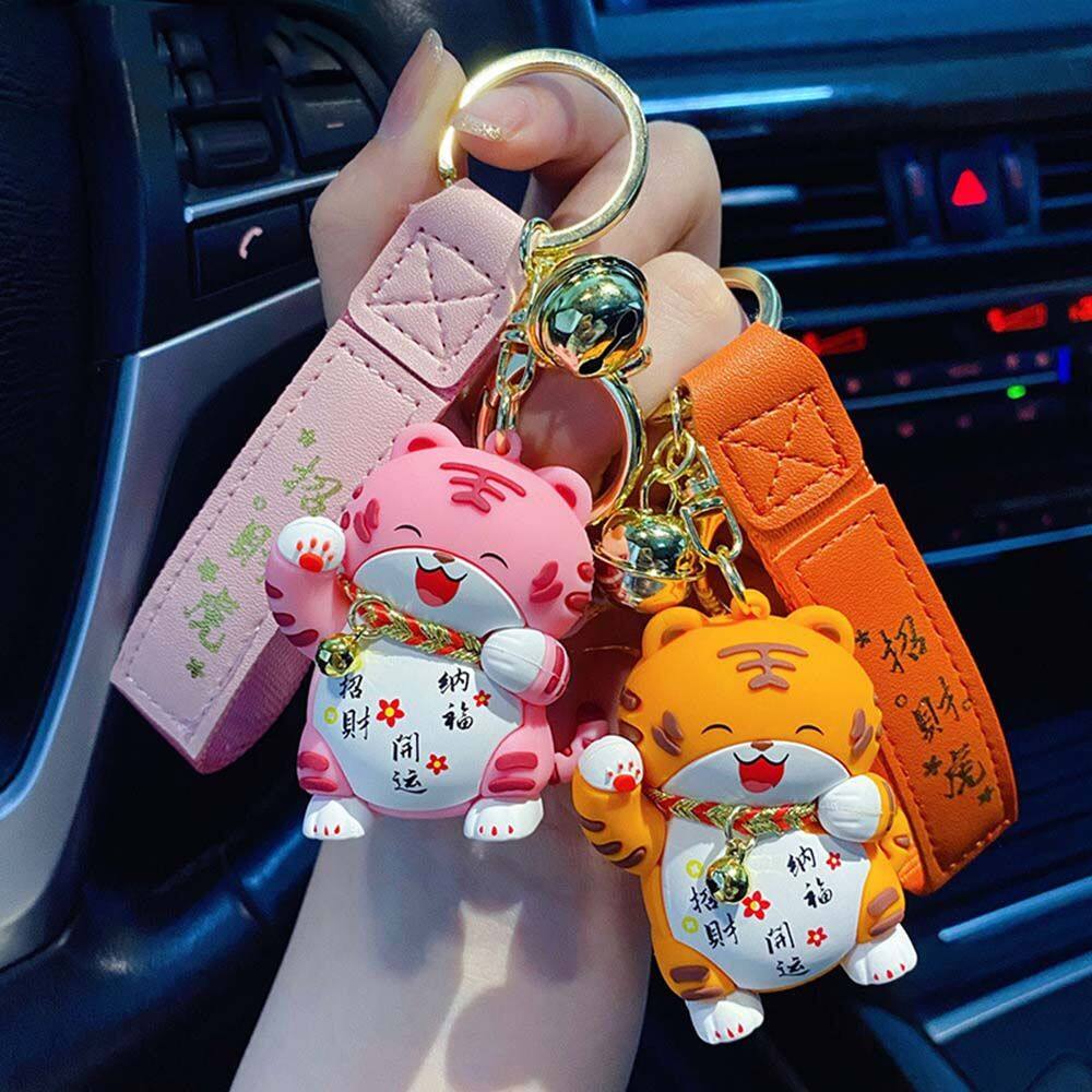 CHIHIRO Girl Cute Car Key Ring Chinese Lucky Tiger Ornament Pu Leather Korean Key Chains Cartoon Tiger Keychains Tiger Keyring Bag Pendant