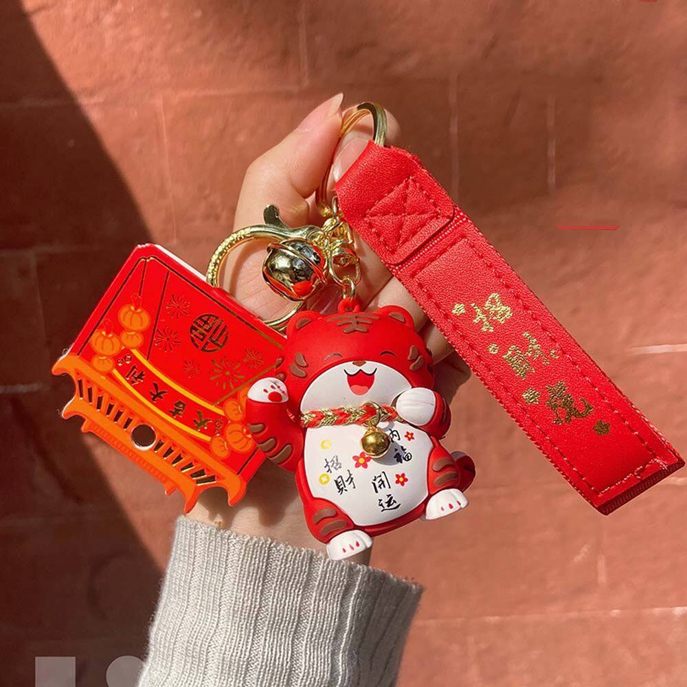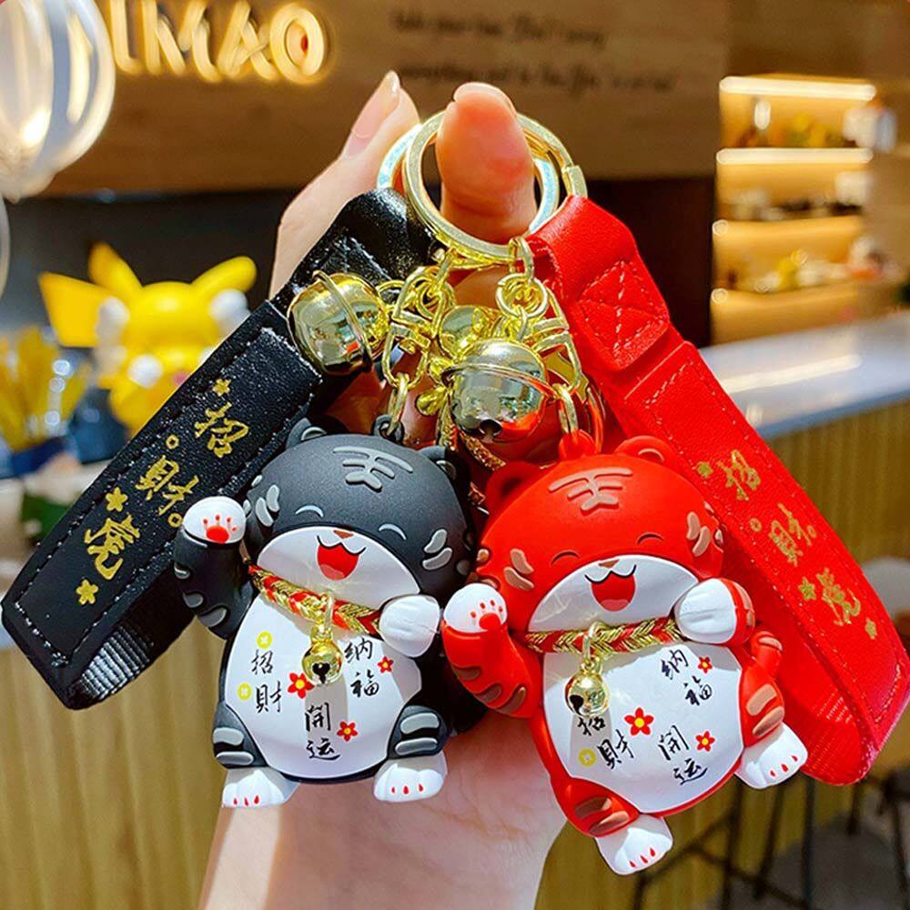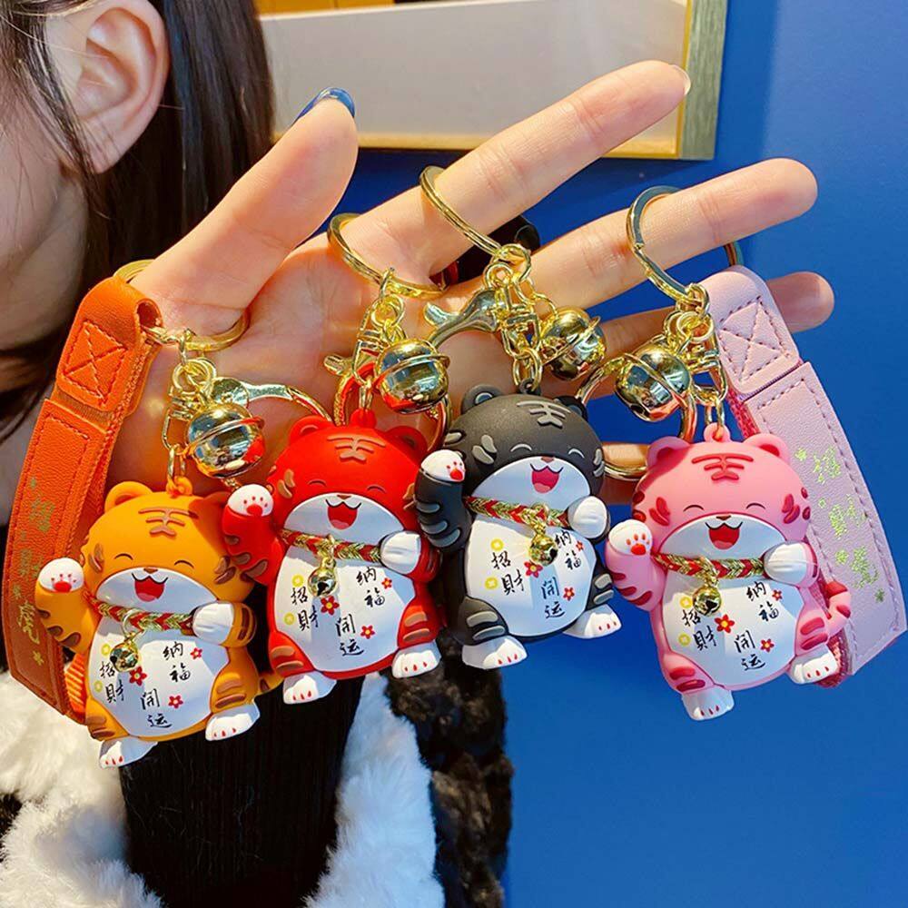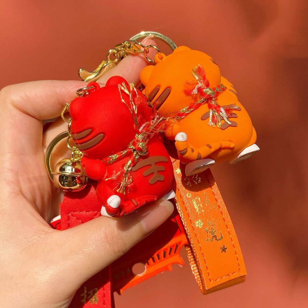 CHIHIRO Girl Cute Car Key Ring Chinese Lucky Tiger Ornament Pu Leather Korean Key Chains Cartoon Tiger Keychains Tiger Keyring Bag Pendant