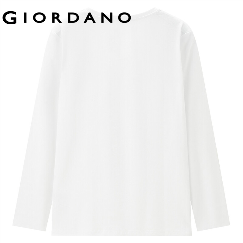 GIORDANO Women San Mei Series T-Shirts Quality 100% Cotton Simple Tee Crewneck Print Long Sleeve Comfy Casual Tshirts 99392198