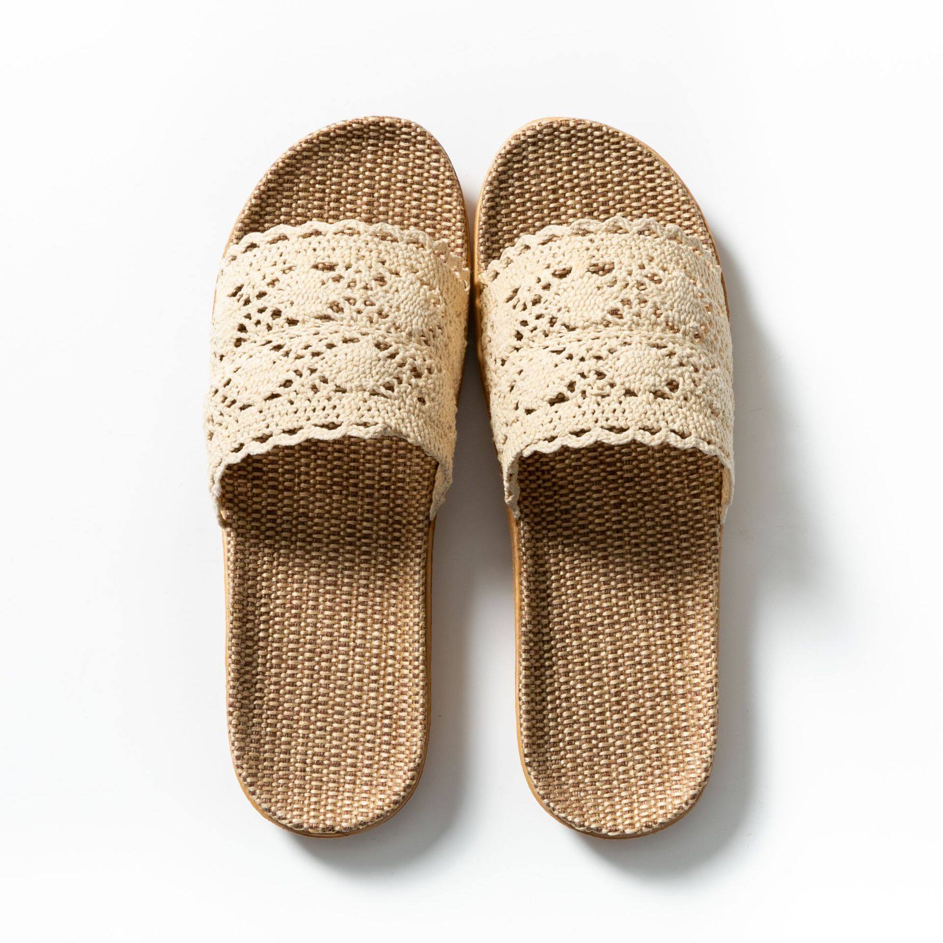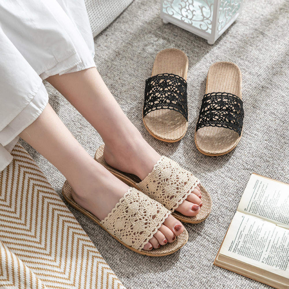 Summer Lace Ladies Sandals and Slippers Home Indoor Non-slip Floor Home Linen Slippers Female Home Use All Seasons Comfortable and Breathable Home Slippers