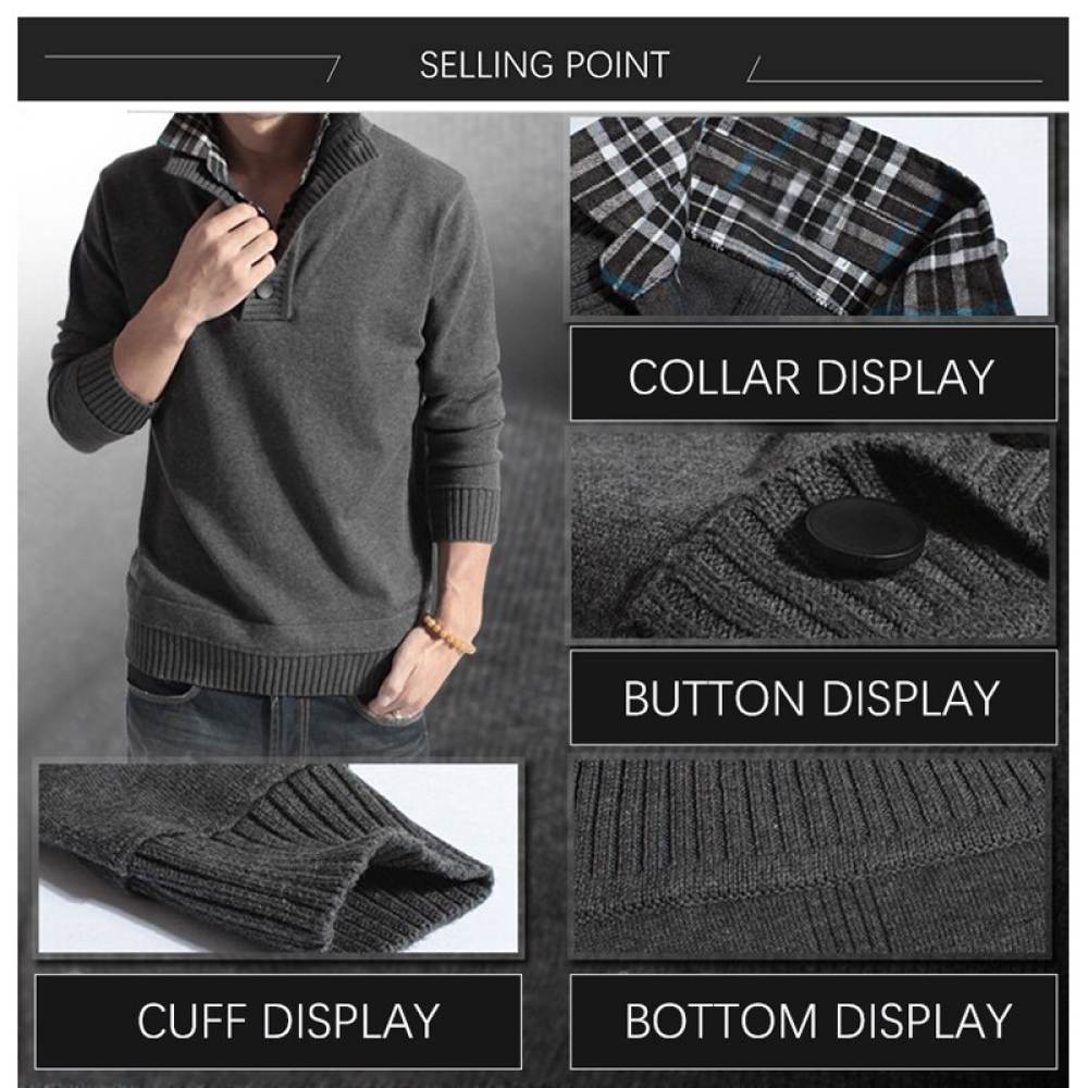 LUX ANGNER Winter Solid Warm Sweater Men Long Sleeve Fake Two Piece Shirt Collar Sweaters For Men Casual Loose Korean Style Sweaters