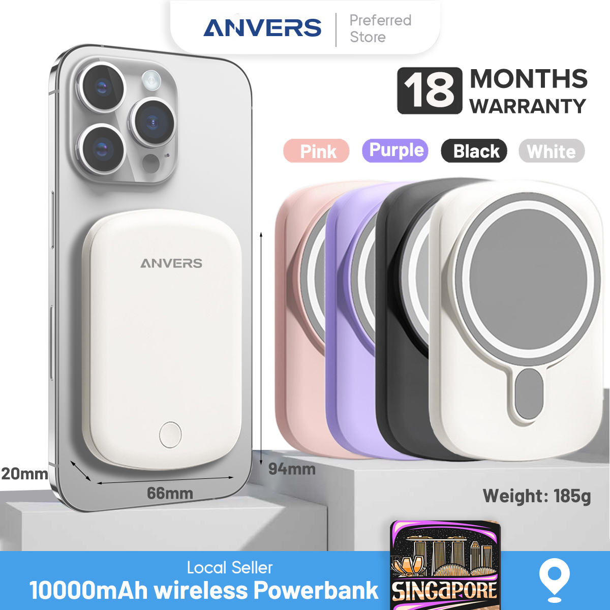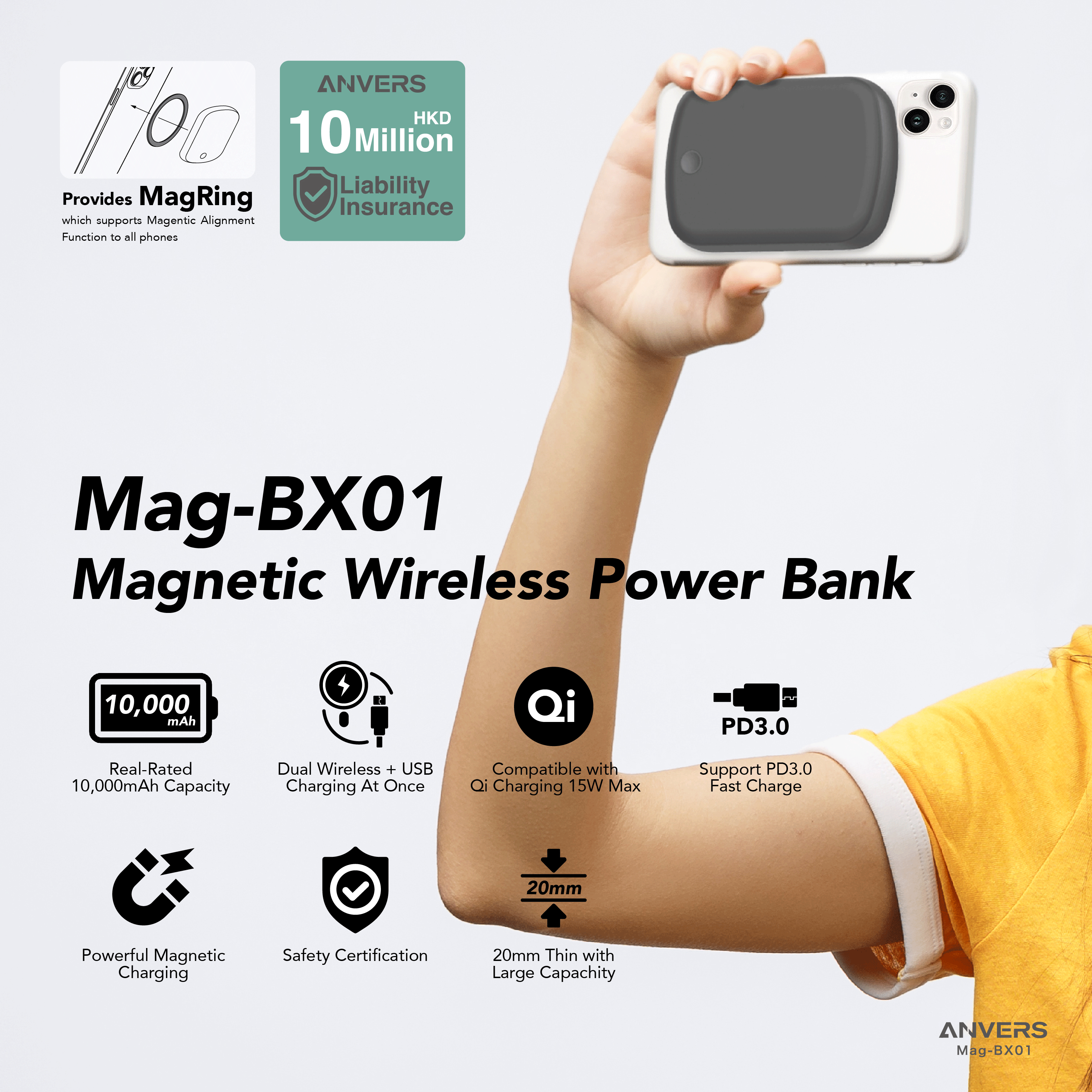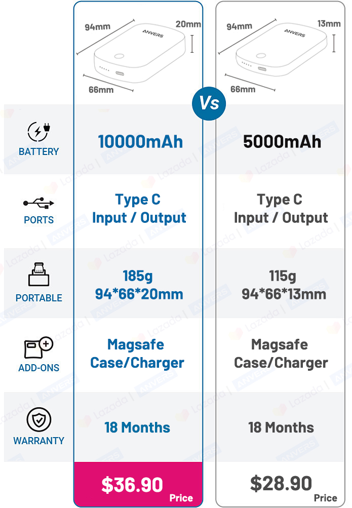 Anvers Magsafe Power Bank Wireless Magnetic Fast Charging Battery Pack Protable Charger for iPhone 16/15/14/13/12