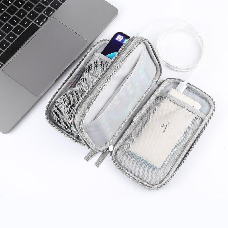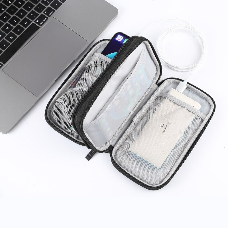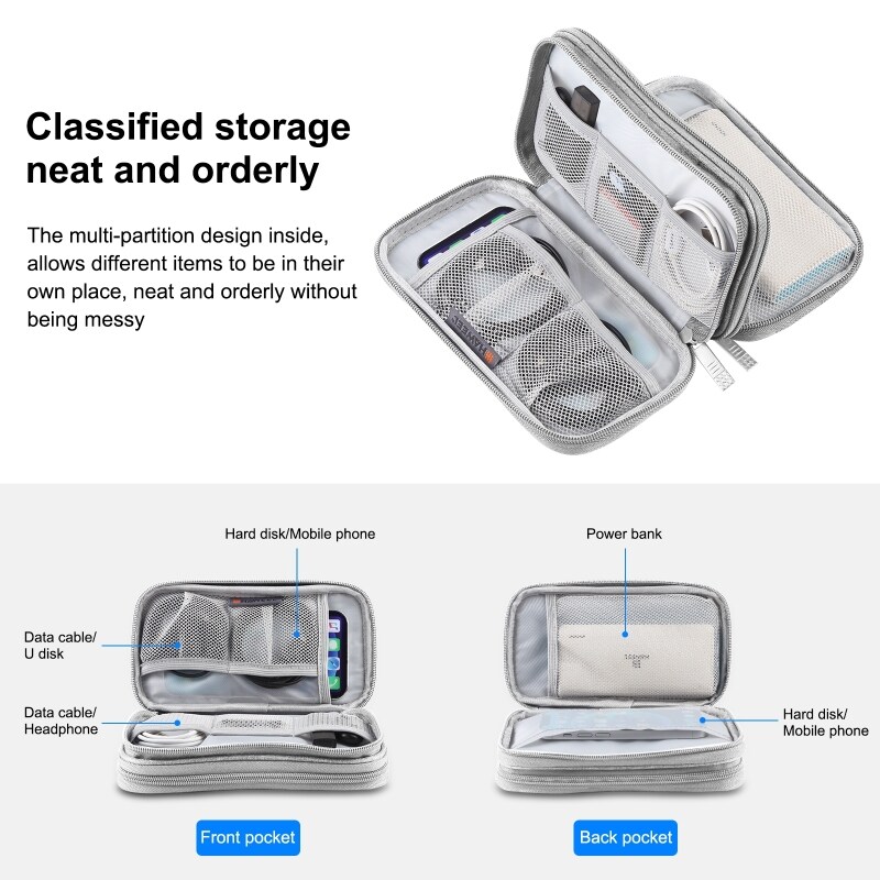 3. Double Layers Design: The electronics storage bag has 2 layers interior compartment with enough space to take in your cords, cables, USB drive, cellphone, charger, mouse, flash drive, and other accessories.