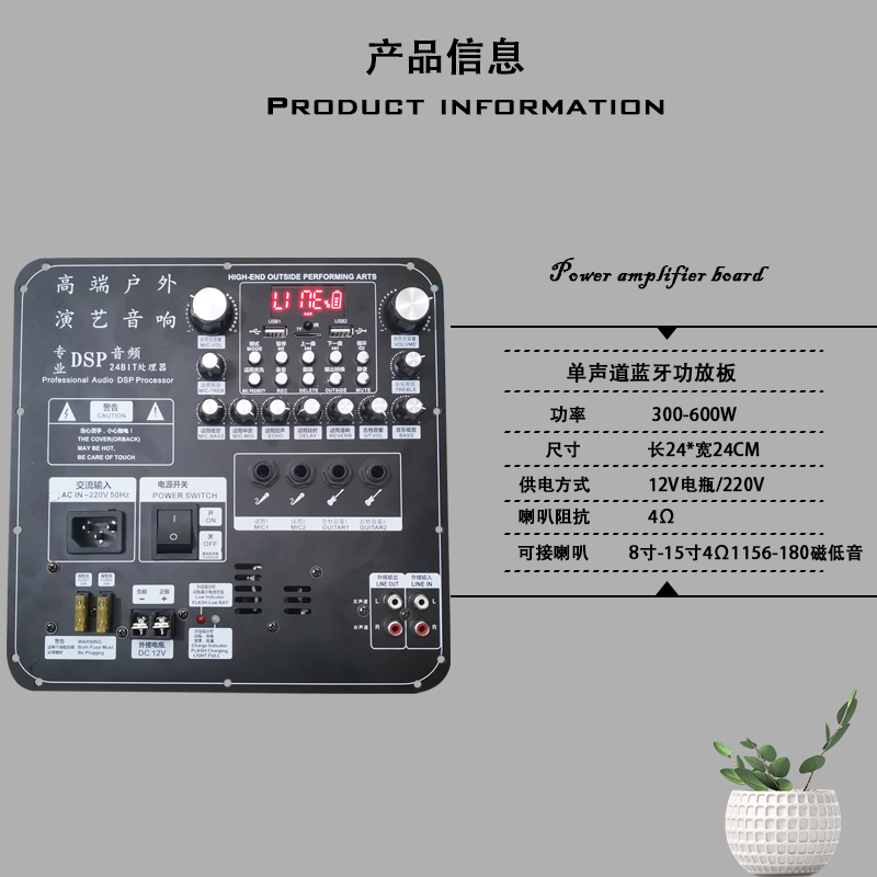 High-Power Square Dance Mono DSP Bluetooth Amplifier Board Outdoor Stage Audio Modification Assembly 12V Motherboard