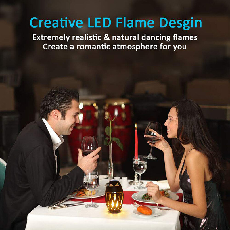 1.Led flame atmosphere speaker table lamp: The speaker has a flame atmosphere lamp, forming a stunning flame, mimic extremely realistic & natural dancing flames, to create a romantic atmosphere for you.