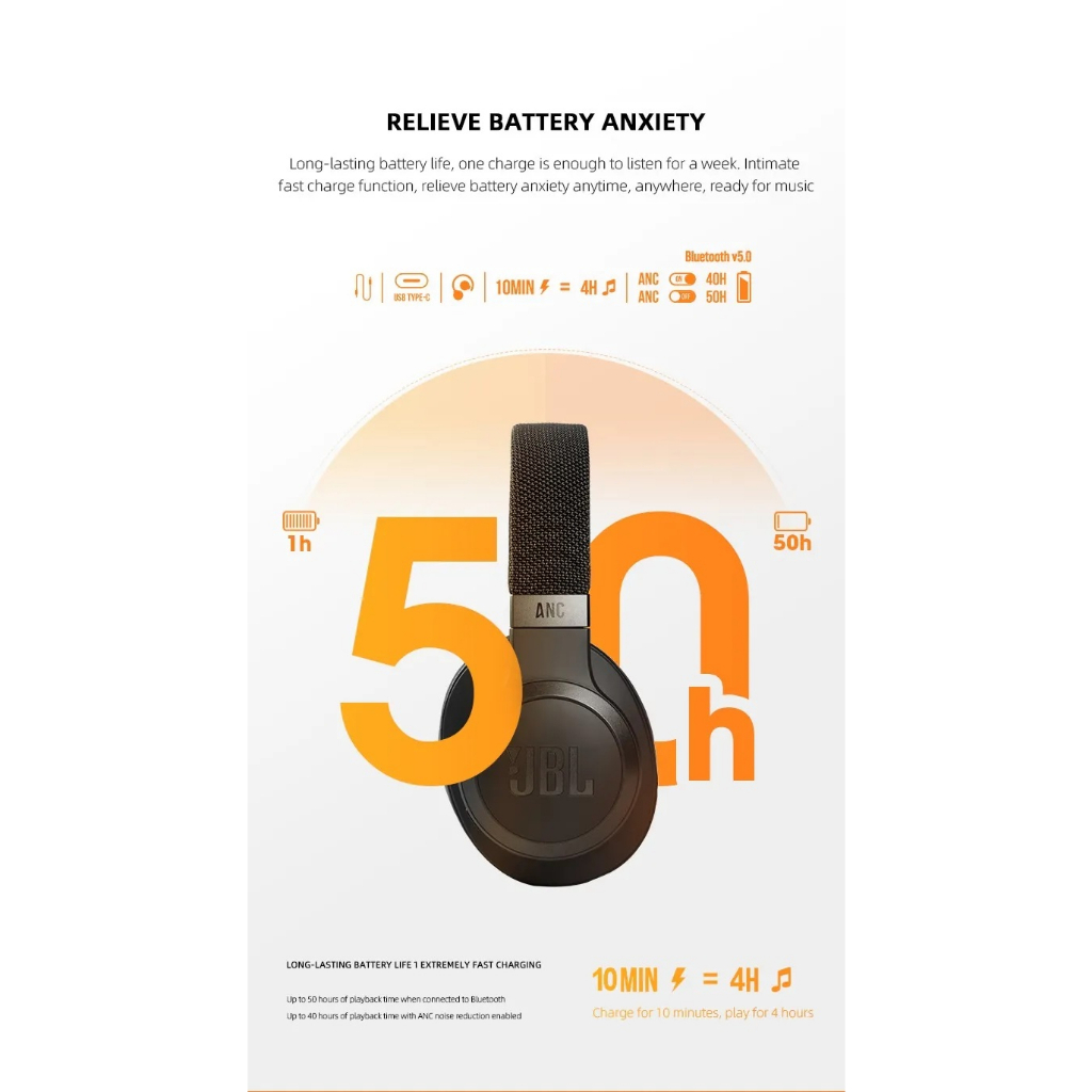 Welcome! 【HOT Selling】 【SG Ready Stock】 【Ship out within 24 hours】 ●●●●●●●●●●●●● Earcups Type:Sealed Charging Method:Cable Impedance Range:up to 32 Ω Bluetooth Version:5.0 Features:Active Noice Cancelling Codecs:Apt-X With Microphone:Yes Is wireless:Yes Support Memory Card:No Waterproof:No Resistance:32Ω Frequency Response Range:20 - 20000Hz Sensitivity:95dB Function:for Video GameCommon HeadphoneFor Mobile PhoneSport Active Noise-Cancellation:Yes Volume Control:Yes Control Button:No Vocalism Principle:Dynamic Wireless Type:bluetooth Communication:Wireless Style:Headphone Certification:CE Origin:Mainland China Brand Name:JBL Model Number:JBL LIVE 660NC ●●●●●●●●●●●●● Technical Specifications: *Driver size: 40mm/1.6" Dynamic Driver *Power supply: 5V, 1A *Weight: 265g/0.6 lbs *Battery type: Lithium-ion Polymer (750mA/3.7V) *Charging time: <2 hrs from empty *Music playtime with BT on and ANC off: Up to 50 hrs *Music playtime with BT on and ANC on: Up to 40 hrs *Frequency Response: 16Hz – 20kHz *Impedance: 32 ohm *Sensitivity: 97dB SPL@1kHz/1mW *Maximum SPL: 94dB SPL *Microphone sensitivity: -19dBV@1kHz/Pa *Bluetooth version: V5.0 *Bluetooth profile version: HFP V1.7, A2DP V1.3, AVRCP V1.6 *Bluetooth transmitter frequency range: 2.4GHz – 2.4835GHz *Bluetooth transmitter power: <10dBm *Bluetooth transmitter modulation: GFSK, π/4 DQPSK, 8DPSK *Maximum operation temperature: 45°C ●●●●●●●●●●●●● The JBL Live 660NC wireless headphones feature 40mm drivers and a sound signature that can be found in the most famous venues all around the world. Keep the noise away and stay focused on the music with Adaptive Noise Cancelling of these Bluetooth headphones. The Ambient Aware technology allows you to safely walk busy streets by increasing ambient sounds, while with TalkThru music is lowered and speech is amplified so you can easily chat keeping your headphones on. ●●●●●●●●●●●●● *Get help from your preferred voice assistant using your voice or with a tap on the earcup. Activate Nose Cancelling or Ambient Aware, check the battery life or power off your JBL Live 660NC simply with your voice. Use the all-new JBL App to easily set your preferred voice assistants. Stay in touch with your world by managing calls with the buttons on the ear-cup. The mic technology allows for perfect stereo calls. Rock on for up to 50 hours (or up to 40 hours with ANC and BT on)! Then, stop for a quick 10-minute charge to get extra 4-hour fun. *Android 6.0 or higher is required for full access to Alexa features when using this device ●●●●●●●●●●●●● ⭐1. Door to door delivery. ⭐(1) Delivery can be made throughout Singapore. ⭐(2) If you need to change the address, you must operate on the platform before shipping. ●●●●●●●●●●●●● Note: This is OEM version and not able to submit warranty via JBL website and not able to use in JBL app.