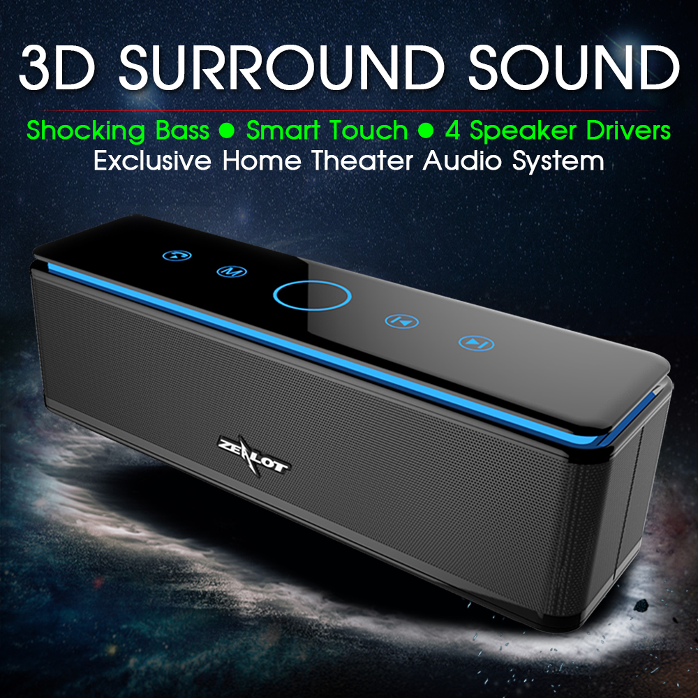 Zealot S7 3D Wireless Speaker Bluetooth Soundbar Powerful Bass Stereo Touch Control Portable 26W AUX TF Card 20 hours Playback Home Outdoor Use