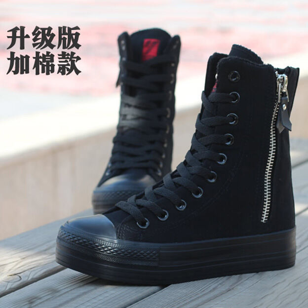 Korean Style Fashionable Spring and Autumn Student Canvas Shoes Women Ulzzang Versatile High-Top Elevator Platform Shoes 776 Middle Boots