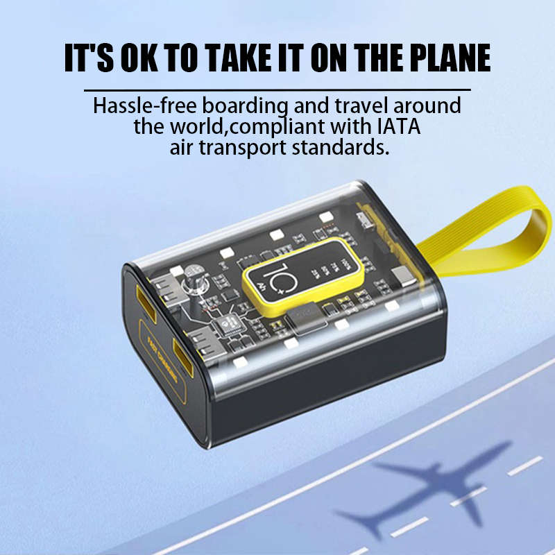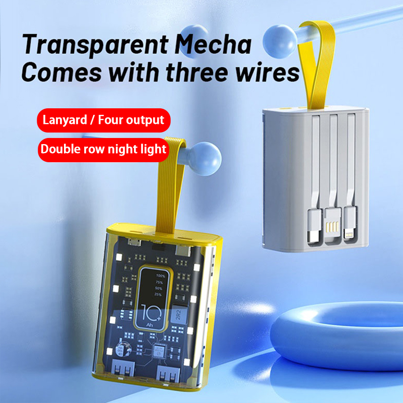 • 1. Transparent mobile power supply: Equipped with 3 charging wires and intelligent digital display, it can charge multiple devices simultaneously.