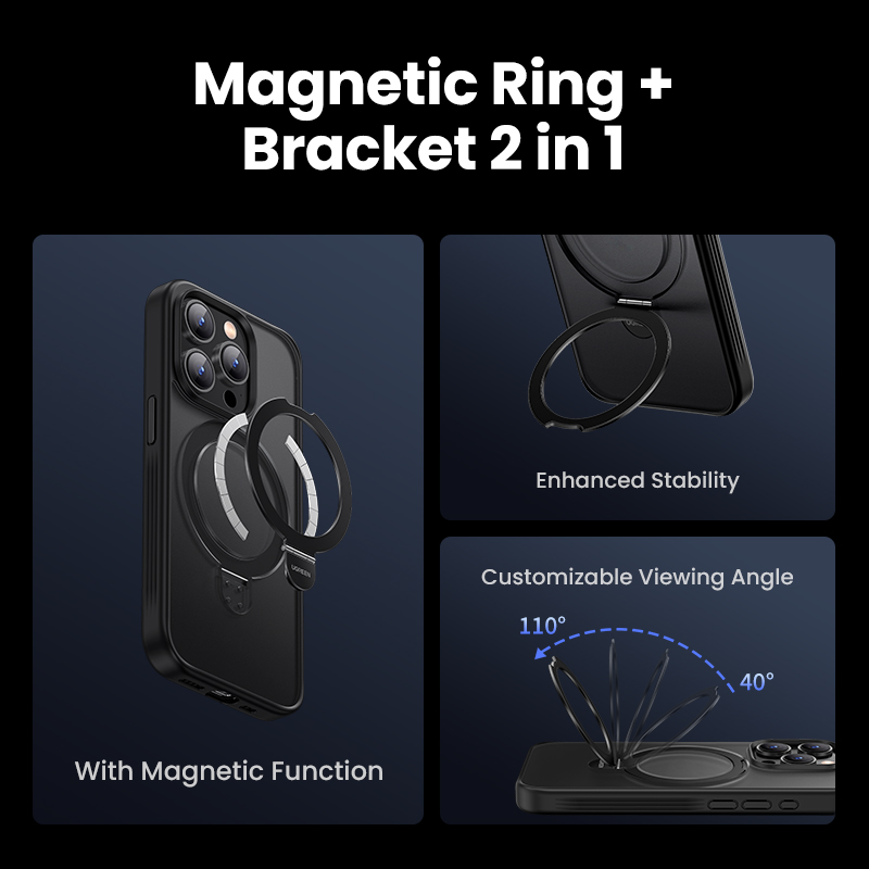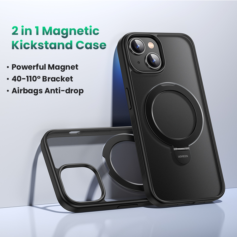 UGREEN 1Pc Magnetic Ring Stand Case for iPhone 15 Pro Max 15 Plus Magnetic Kickstand Case