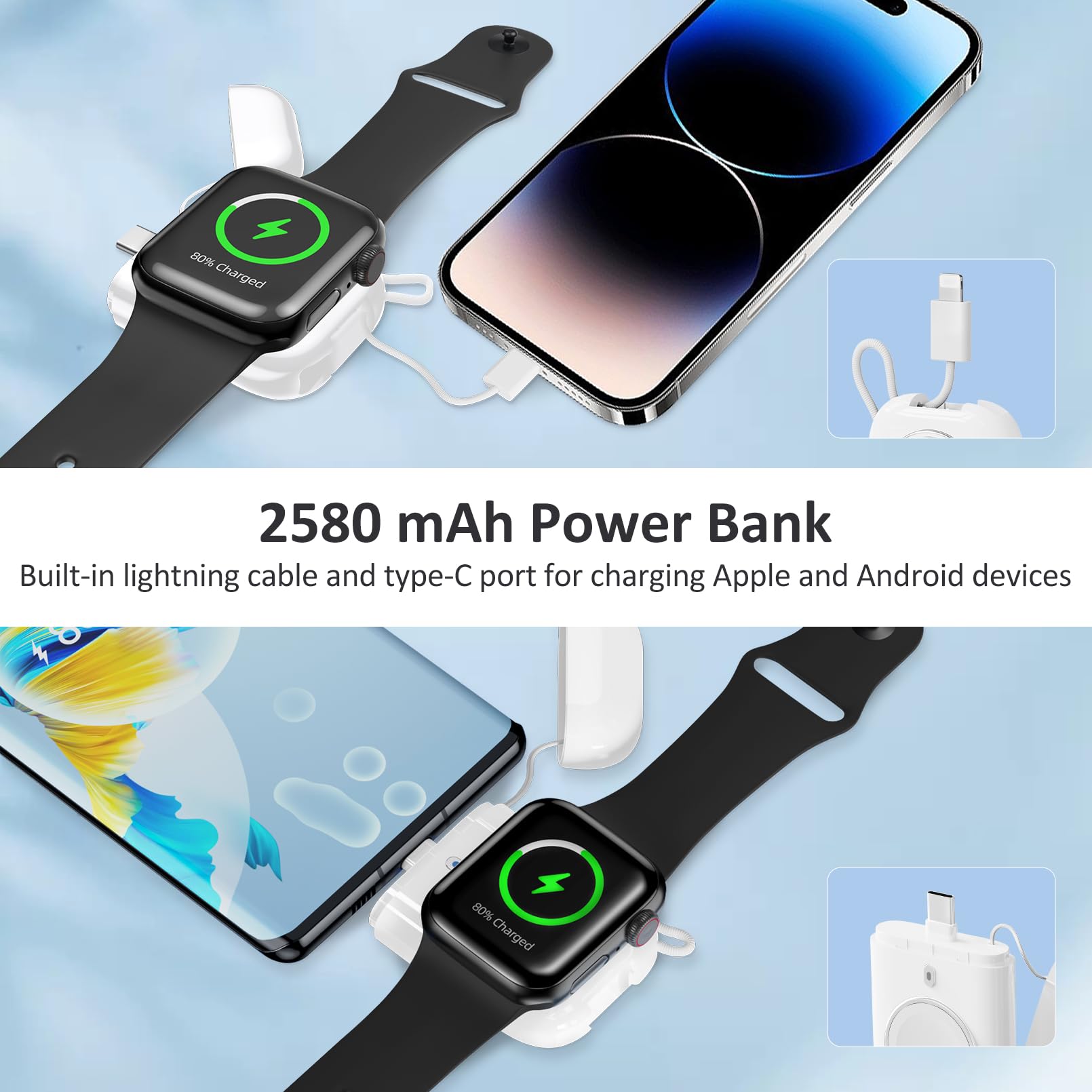 Anvers Portable iWatch Power Bank Magnetic Wireless Charger Travel Charger for iWatch Series 1-8