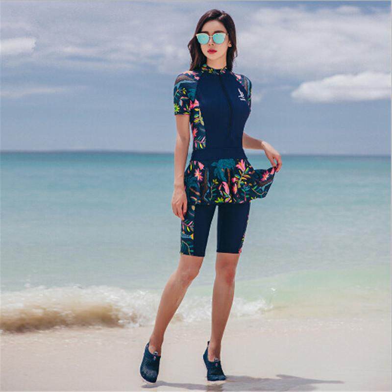 Luoke Sport Swimwear Shorts Black Swimsuit Women's Conservative Swim Suit for Women One-piece Striped Flat Angle Cover Belly Slim Swimming Suit Women Long Sleeve Hot Spring Swimsuit Discount Hot Sale