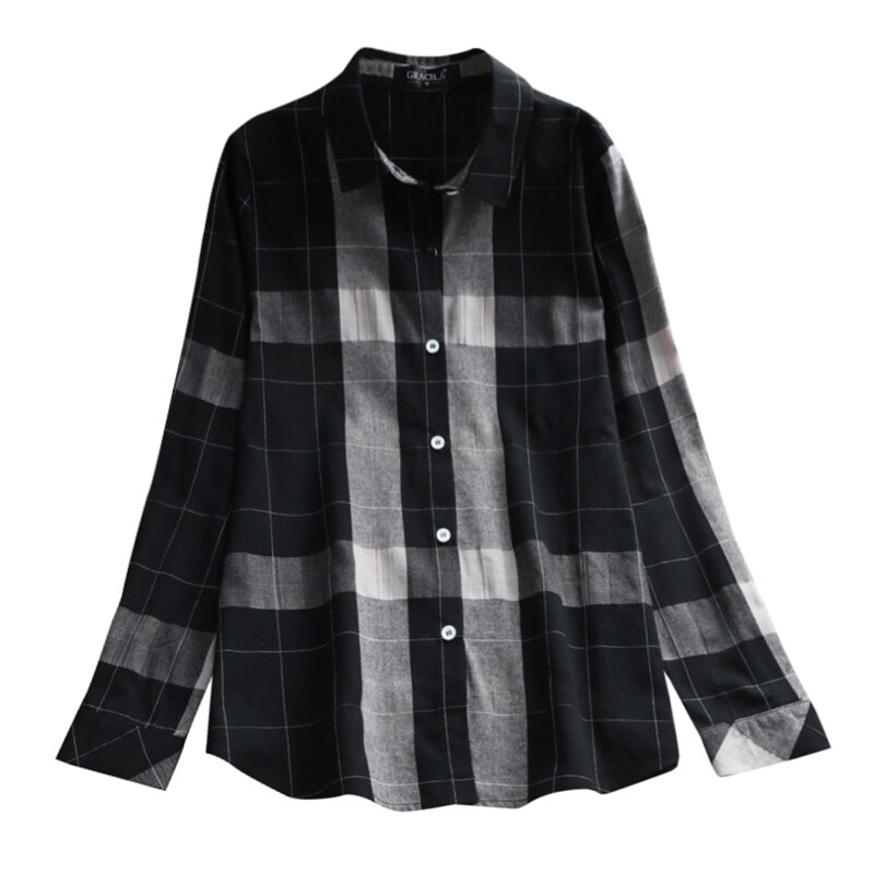 Fancystyle Gracila Women Check Plaid Long Sleeve Casual Loose Tops Shirt Blouse Plus Size
