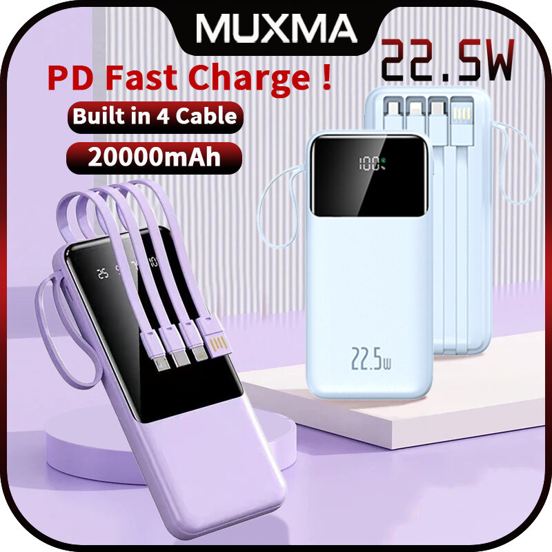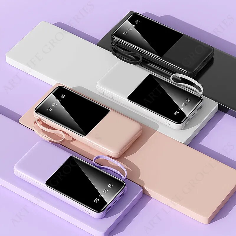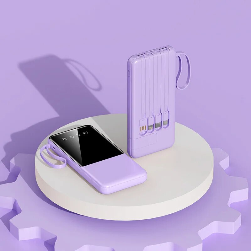 Portable Power Bank 20000mAh Fast Charging External Battery Charger Powerbank For iPhone Xiaomi Built in Cables