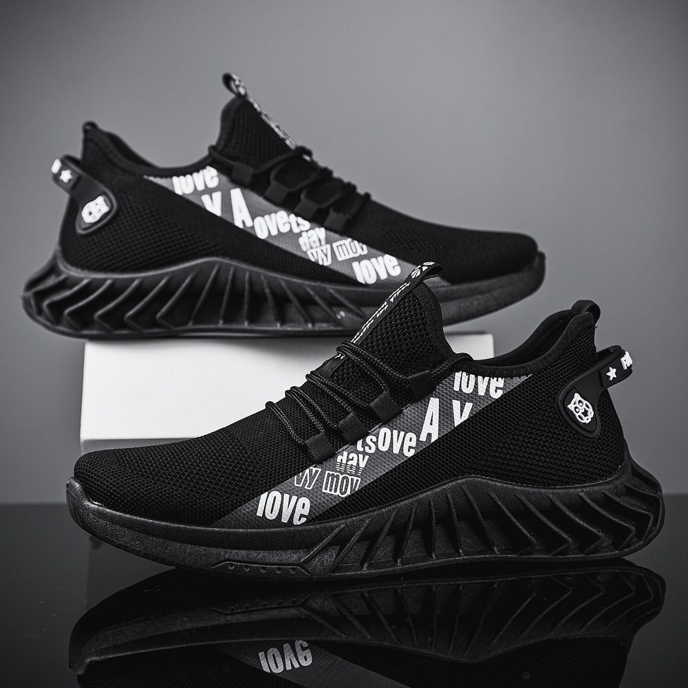 Mesh Surface Shoes Men's Summer Breathable Thin Mesh Surface Hollowed Large Mesh Men's Shoes Casual Running Black Flyknit Sneaker