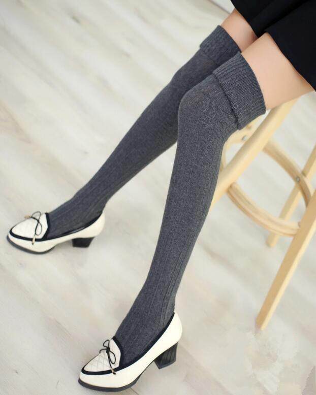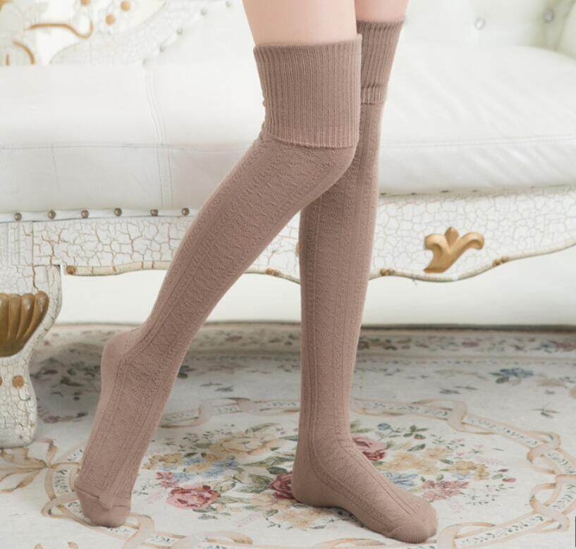 Yingbao Korean style Long Socks Thick Women Thigh High Over The Knee Winter warm Cotton knitted ladies Casual Boot Stockings Leg Warmers White Black Maroon Dark Blue Grey