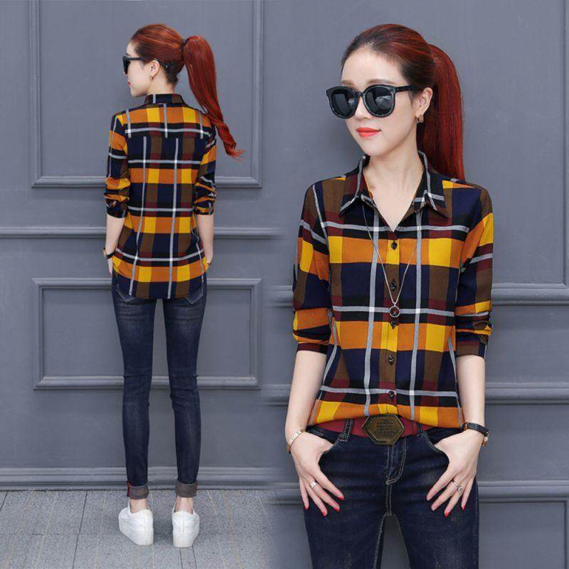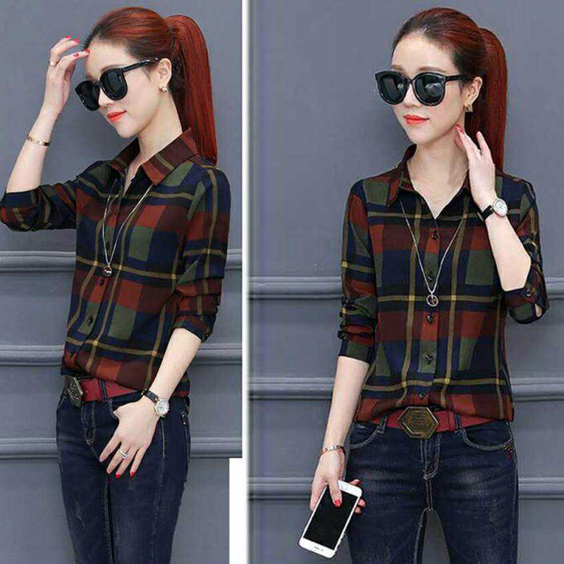 Korean Fashion Plaid Shirt Women New Long Sleeved Blouse