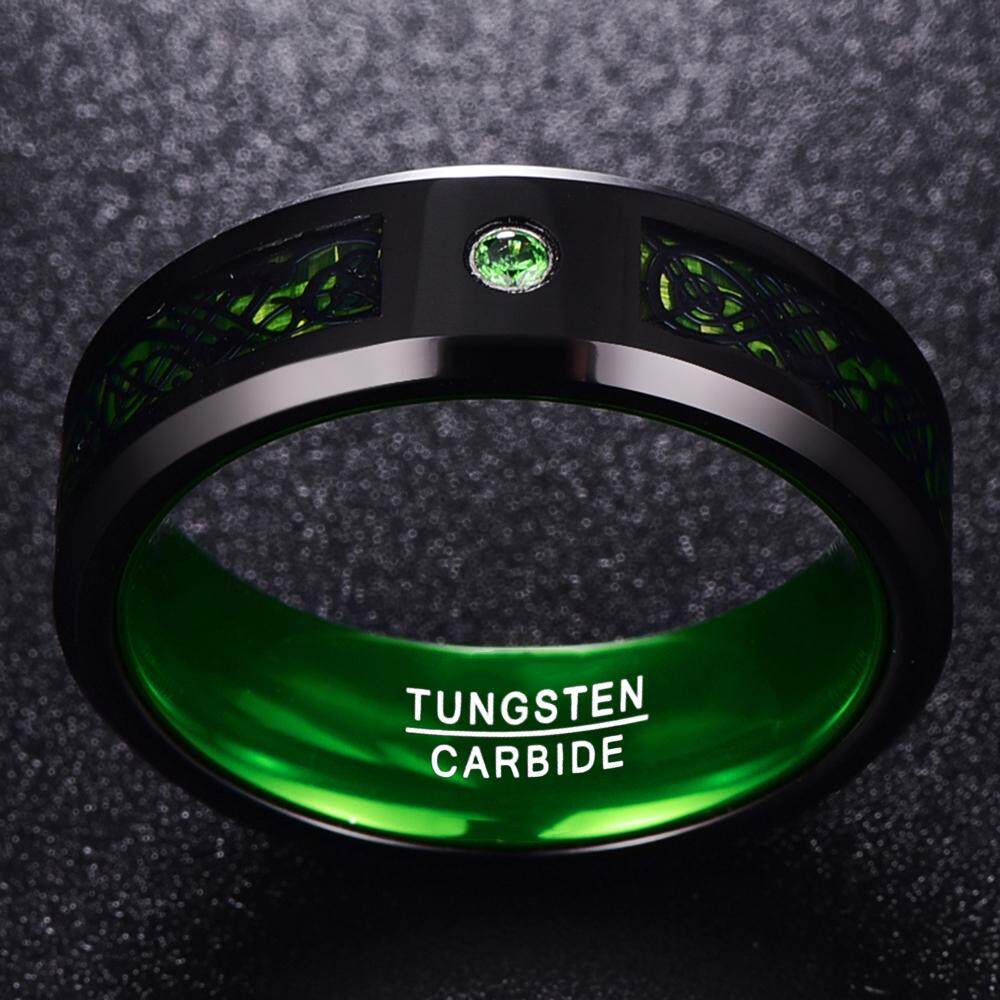 AVECON 【Support Engrave】Green Tungsten Carbide Wedding Band Ring Celtic Dragon Green Carbon Fiber for Men 8mm Size 7 to 14