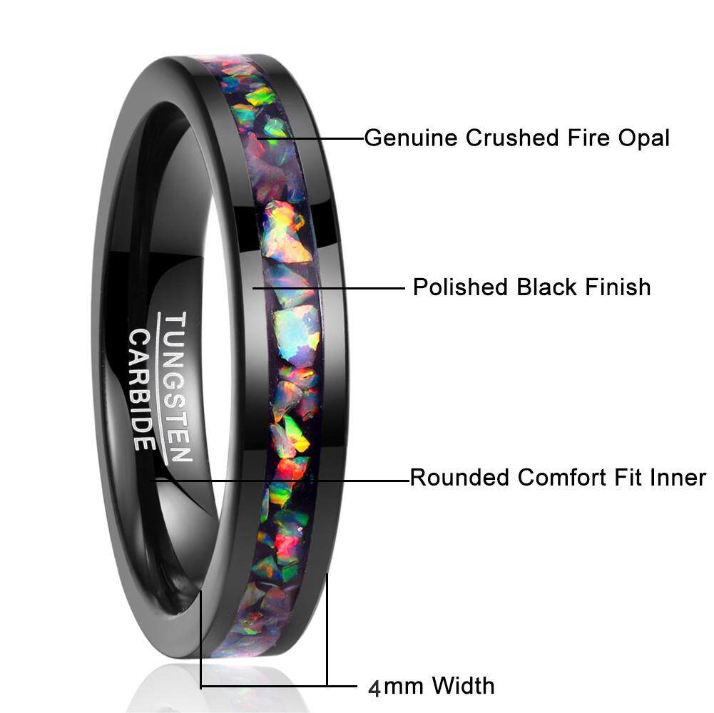 AVECON 【Support Engrave】4mm Colorful Opal Inlay Tungsten Ring Black Wedding Band Engagement Ring for Men Women Comfort Fit Size 5-12