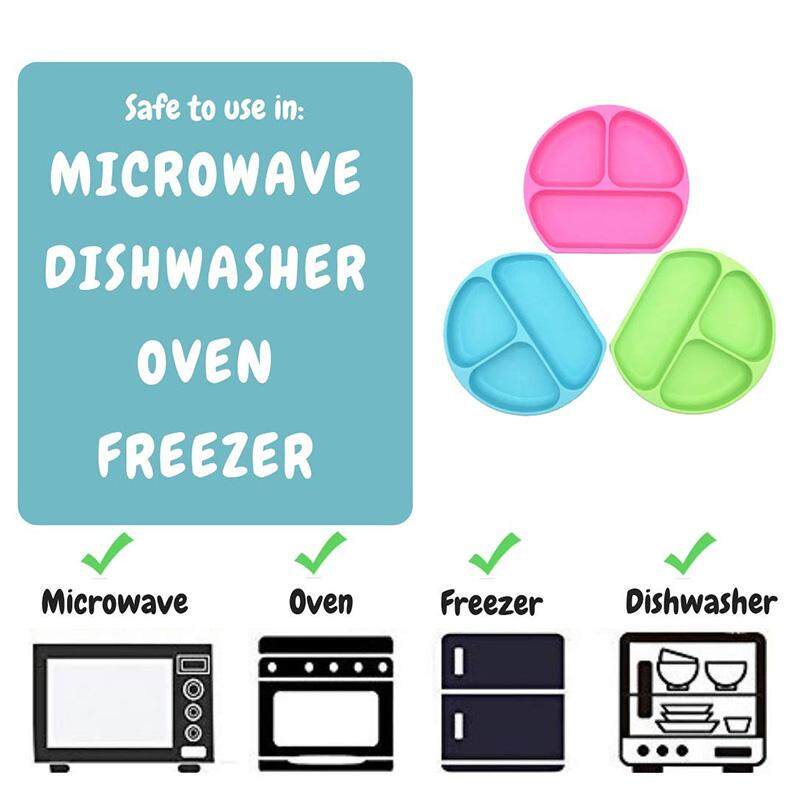 SZR Suction Plate And Bowl That Stick To highChair, Non Slip Silicone Feeding Placemat For Babies, Infant, Divided Baby Dishes, Perfect Kids Plates, Dishwasher, Microwave Safe