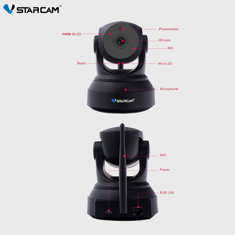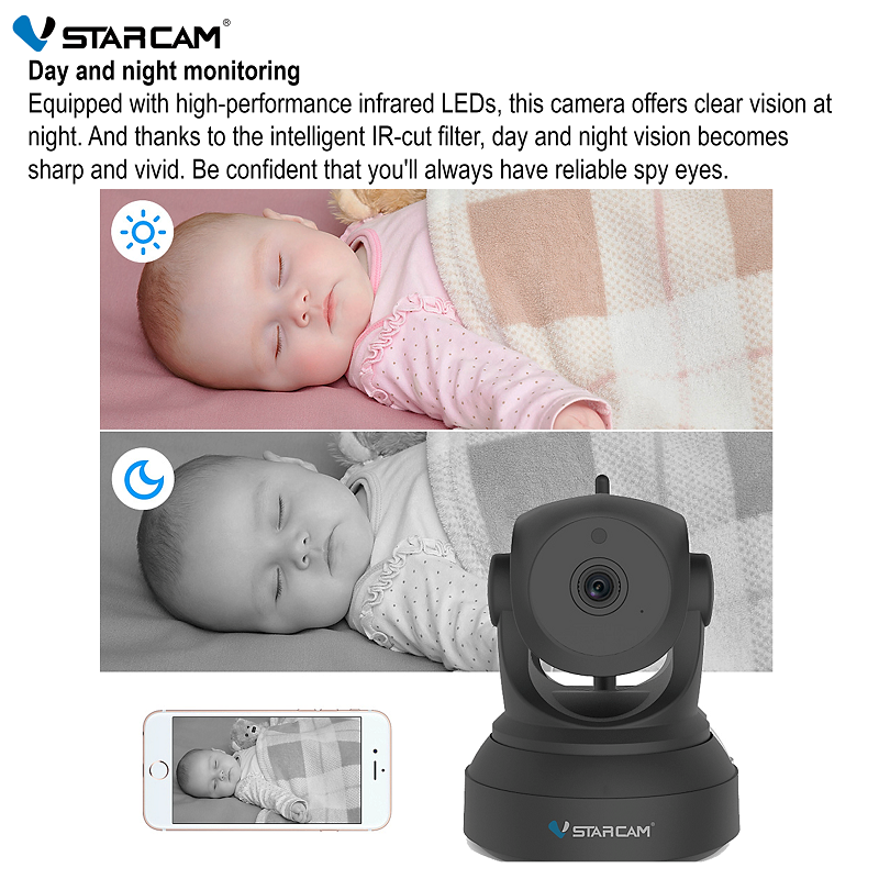 Upgraded 3MP Vstarcam Black C82R Wireless WiFi IP Camera with Auto Motion Tracking, IR-Cut Night Vision, 2-Way Audio CCTV Camera (App:Eye4)