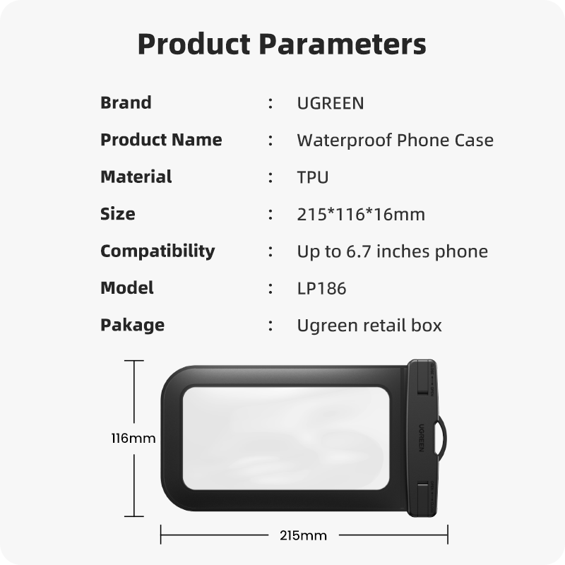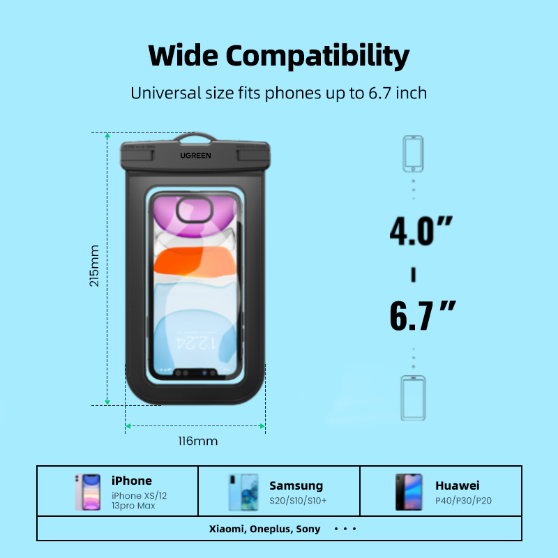UGREEN 6.7 inch Waterproof Phone Case Support Touch ID Universal Durable Underwater Dry Bag for Smartphone iPhone 14 13 Pro Max iPhone 14 Plus iPhone 11 12 Pro Max,Xiaomi Redmi Note 7,OPPO Realme 5 ,V