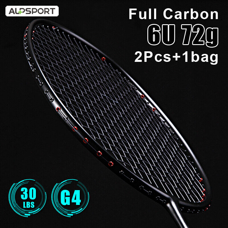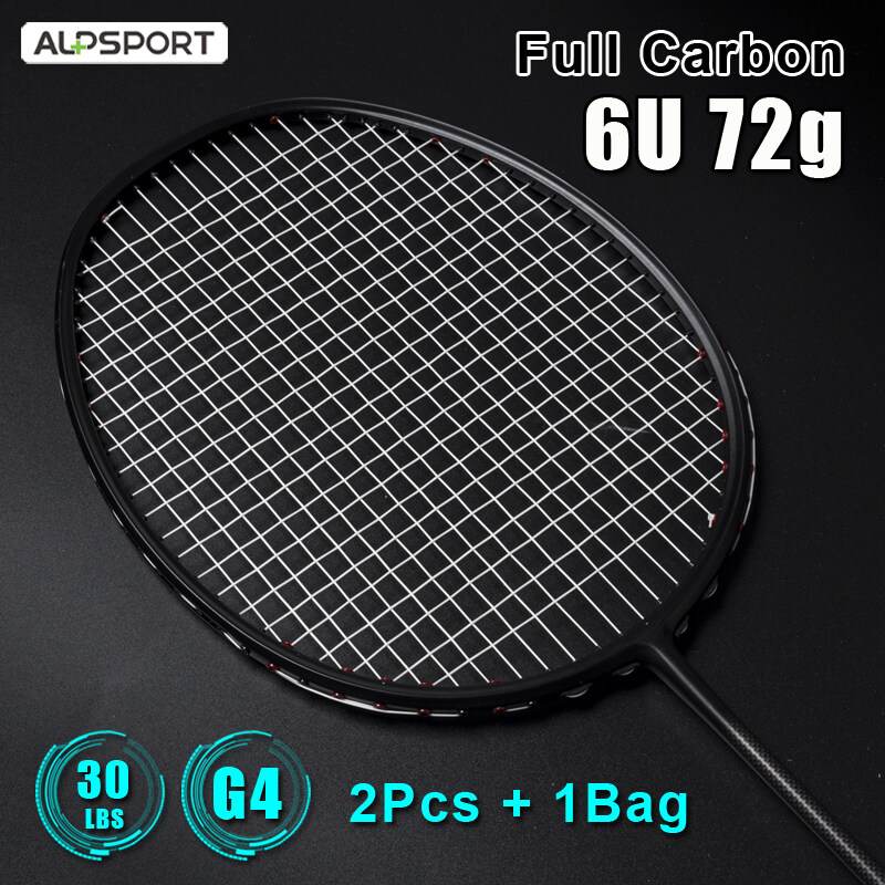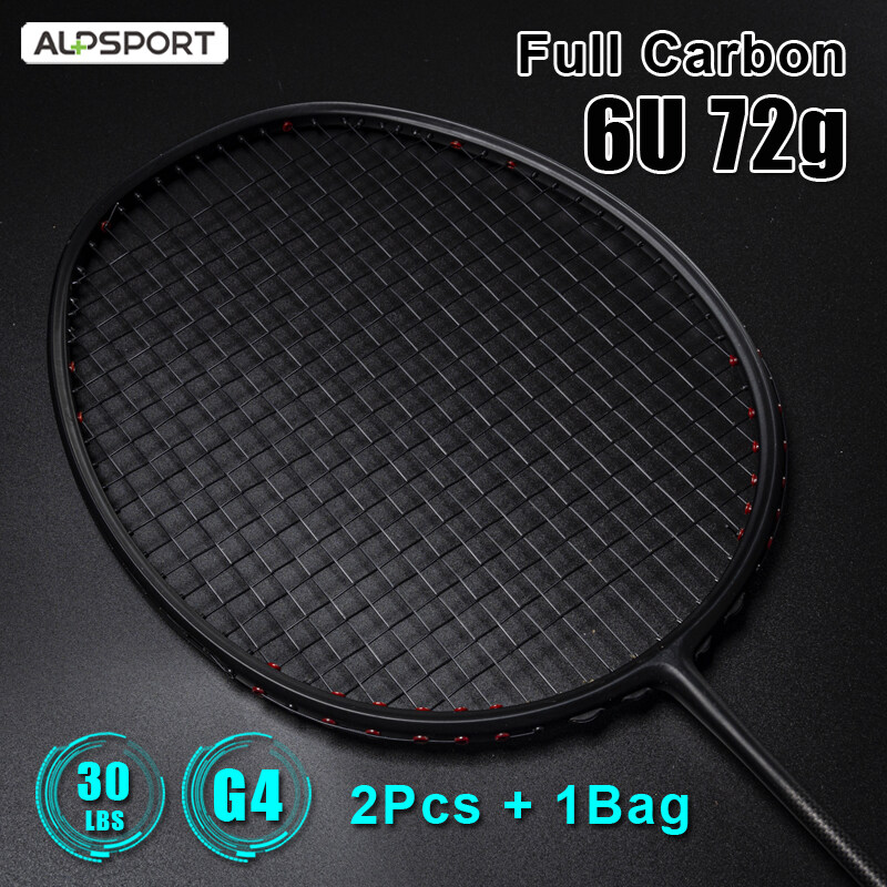 ALP XHP 【2 Pcs+Bag】 6U 72g 100% Full Carbon 30 LBS Strung Badminton Racket With Professional Ultralight Reket Badminton Racquet Free String High Tech G4 T700 Elastic Fiber Sports Equipment Battledore Offensive Training Raket For Men And Women