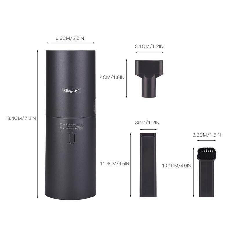 Feature:【3 In 1 Designs】The long and flat air collector cylinder for small stuff cleaning; the air blower cylinder represents strong wind; and the brush for surface cleaning.【Strong Wind Power】Strong power, powerful suction, high rotatory concentric, 2.0kpa powerful suction is permitted.【Long Durability】Built-in 2000mAh large-capacity battery can be charged and used for 1000 times. Can be fast fully charged in 4 hours.【Repeatedly Usable Filter Net】HEPA filter net is detachable for convenient water wash. Can be repeatedly used, eco-friendly and money-saving.【Cordless and Compact Vacuum】Ultra-lightweight and space-saving. You can put it on your desk, car, room, using it anytime, anywhere to clean all kinds of dust, scraps and hair.Easy to use:1) Install the cylinder needed.2) Long press the button for 2 seconds for power on.3) Short press the button for power off.4) Make sure to charge it when the battery is low for convenient use of the next time.Notice:1) The suction will get weak when the electricity is insufficient.2) Clean the mesh filter at least one time per month, it must be cleaned immediately if there is too much dirty.3) The cordless vacuum can't be touch to liquid.Specification:Voltage: DC5VCharging electricity: ≤1APower: ≥ 35WRotary speed: 26000-29000R/MinCharging time: Approx. 20MinSuction: 2.0kpaBattery capacity: 2000mAh*2USB length: 800mm±30mmOutput voltage: 7.4VWorking electricity: 5AItem size: 18.4x6.3cmPackage Content:1 x Vacuum Cleaner1 x Storage bag1 x Air blowing cylinder1 x Air collection cylinder1 x Brush1 x USB cable