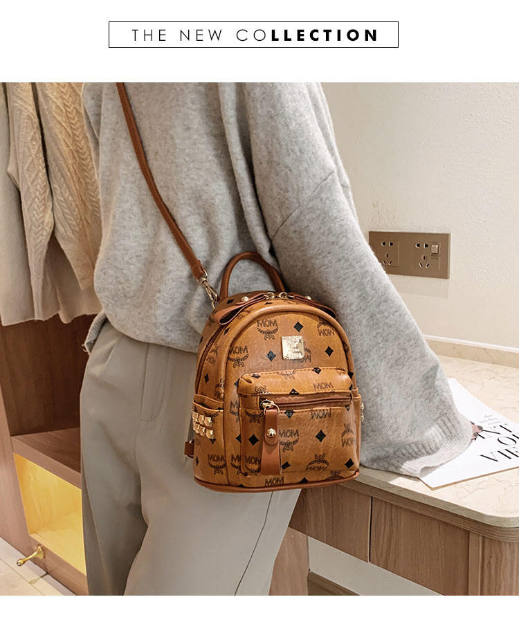 INS Super Fire Bag Backpack for Women 2022 New Mini Rivet Fashion Small Backpack Classic Printing Small Bag Fashion