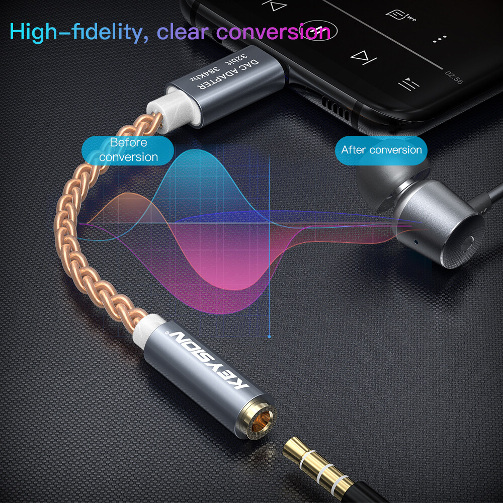 KEYSION HIFI DAC earphone Amplifier USB Type C to 3.5mm Headphone Jack audio adapter 32bit 384kHz Digital Decoder AUX Converter