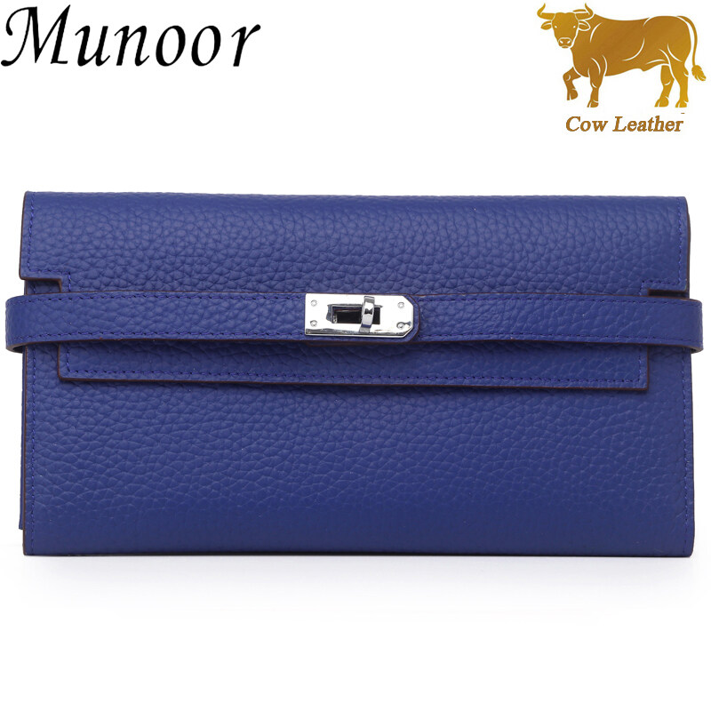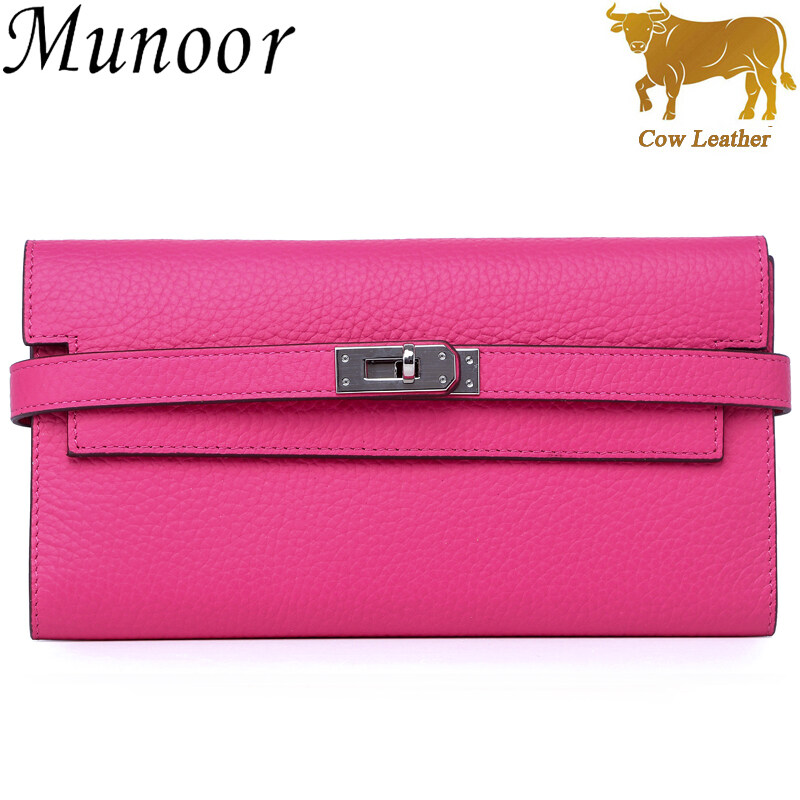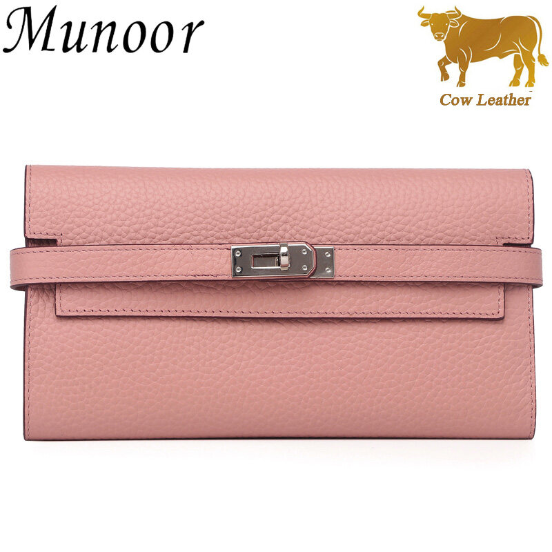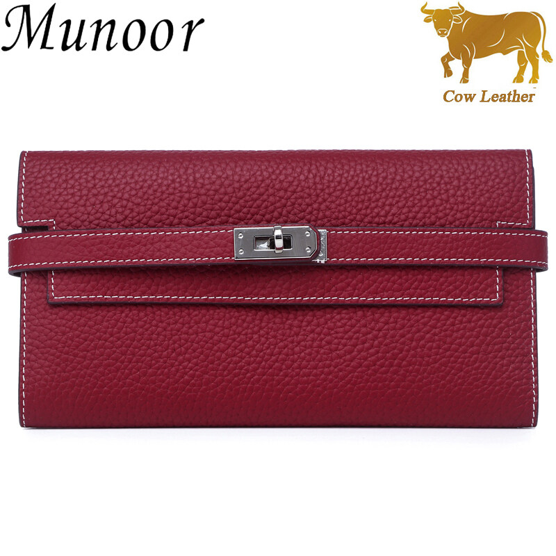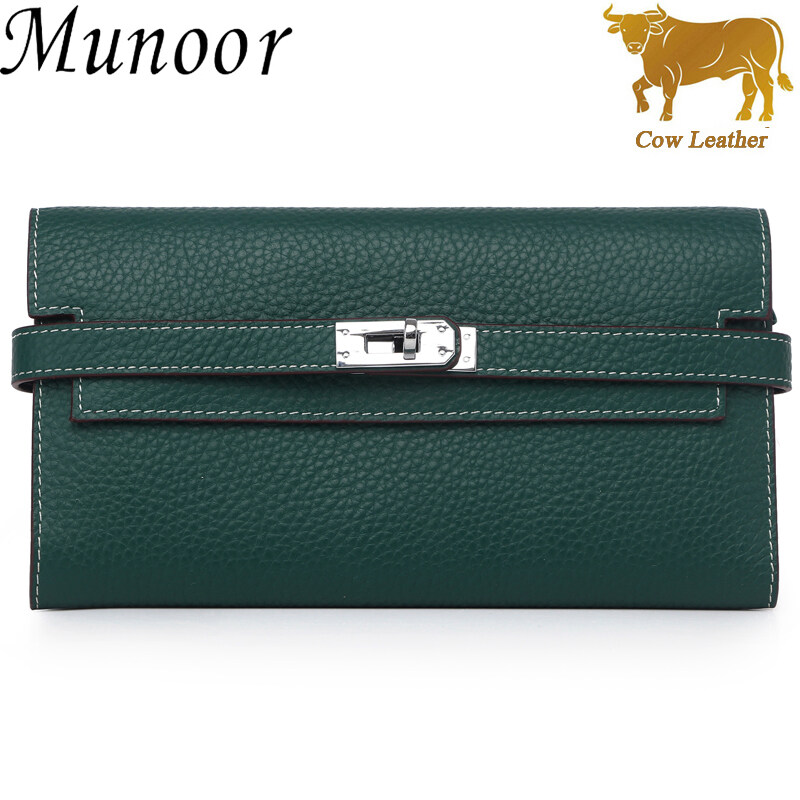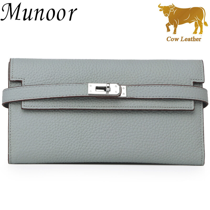 Munoor High Quality Italian Imported 100% Genuine Cow Leather Women Long Clutch Wallet Woman Purse
