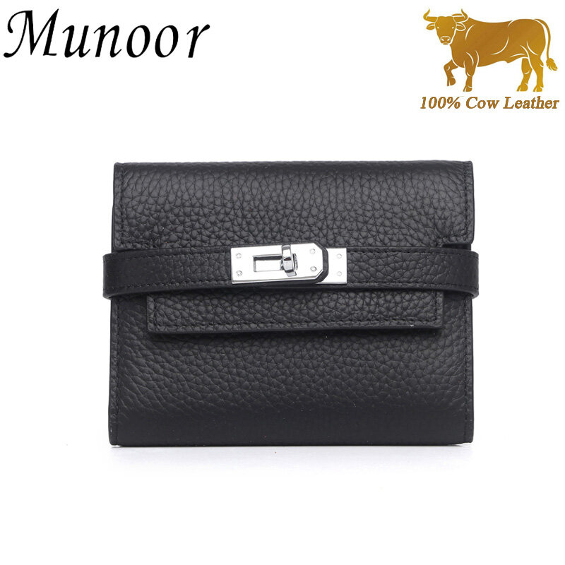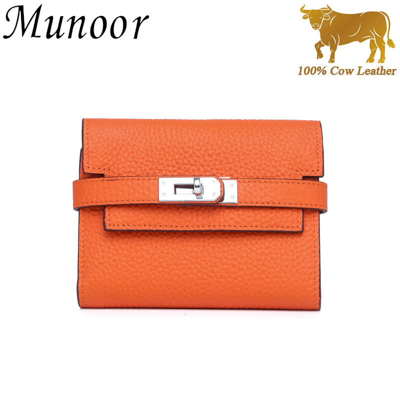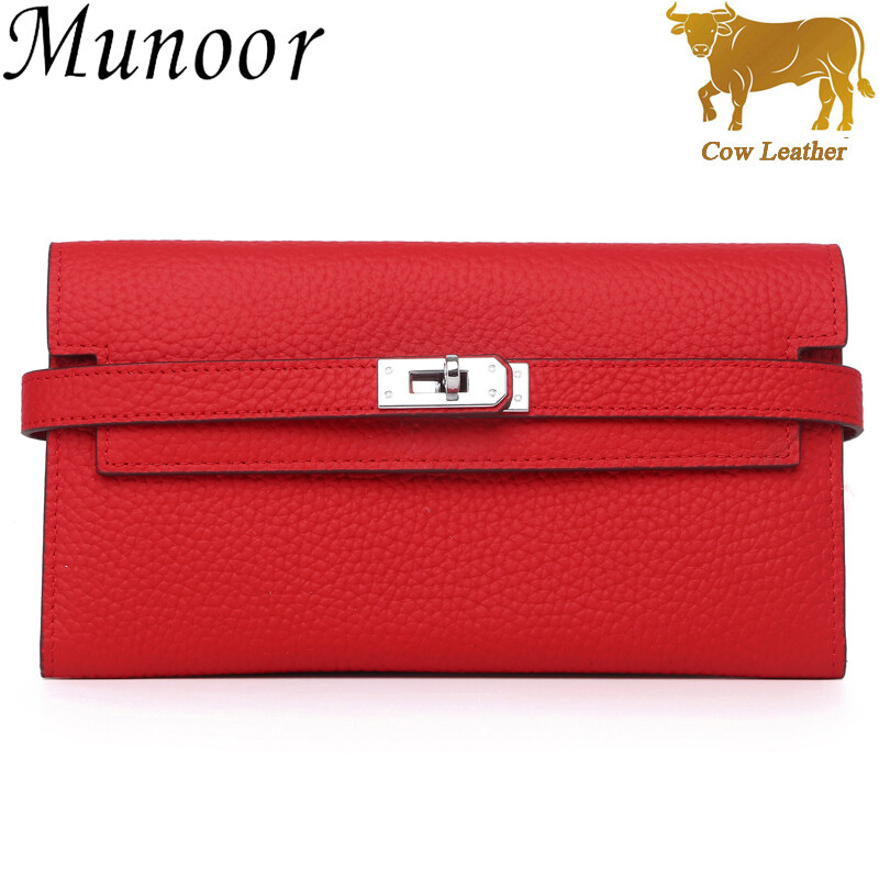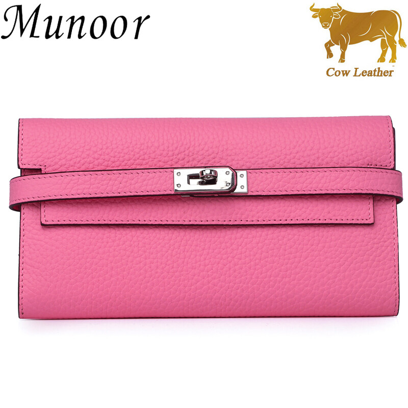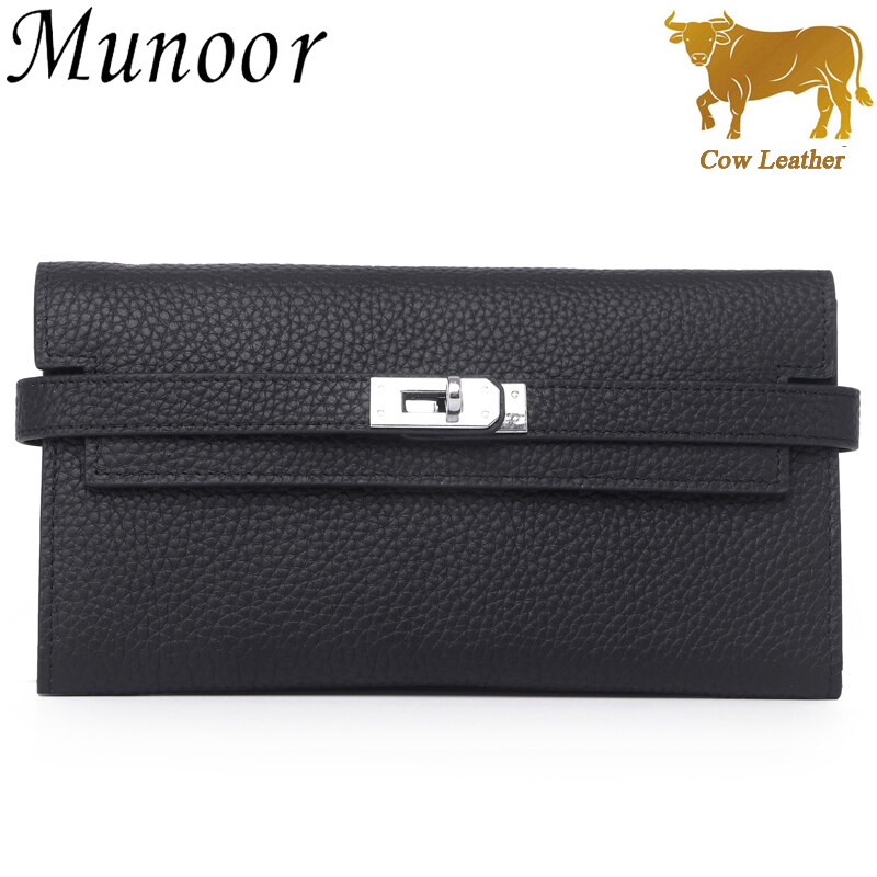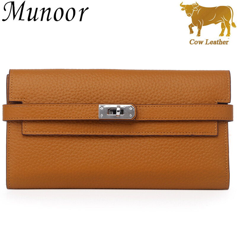 Munoor High Quality Italian Imported 100% Genuine Cow Leather Women Long Clutch Wallet Woman Purse