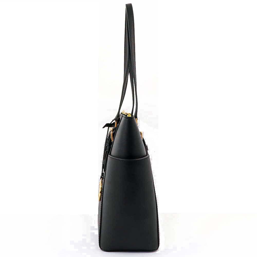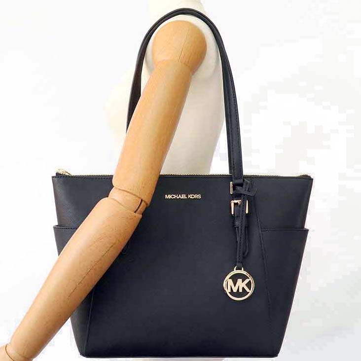 Michael Kors Tote With Gift Bag Jet Set Travel Zip Top Tote Shoulder Bag Black Vanilla Brown